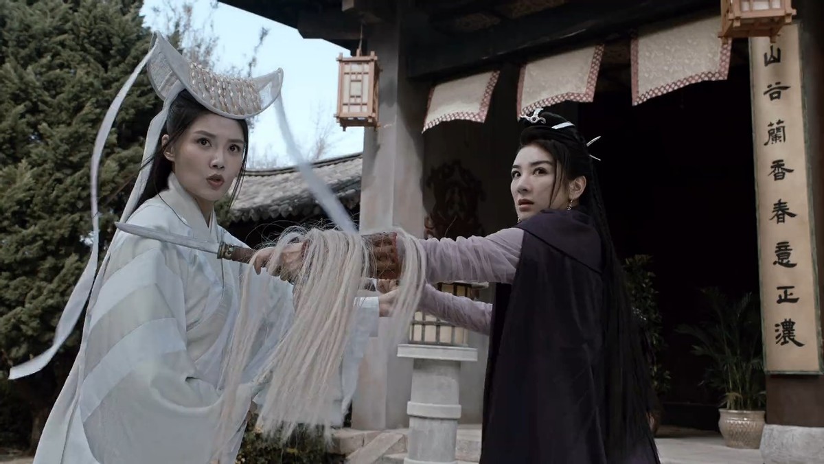 因此,剧中的人物,无论衣着造型还是妆化,也都有了许多 “古早”的厚重味道,但偏有一人有些例外,那便是由徐冬冬饰演的刀白凤,虽然这个人物出镜时已经遁入空门,但一袭白衣,一顶弯月僧帽,遮不住明眸善睐的亮丽与灵动,让人眼前一亮。