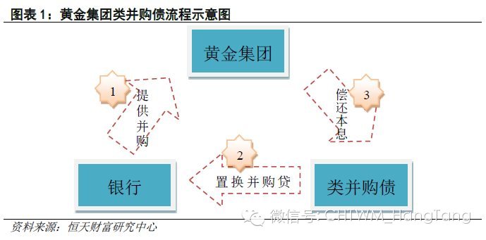 以2013 年5 月浦发银行主承销的黄金集团并购债为例,其发行额度为1.48 亿元,是全国首单并购债务融资工具。首先黄金集团向银行提出并购贷款需求,并获得贷款资金;其后黄金集团发行类并购债,所得资金用于置换并购贷款,为黄金集团偿还并购贷款资金;最后由黄金集团向类并购债的持有人偿还本息。