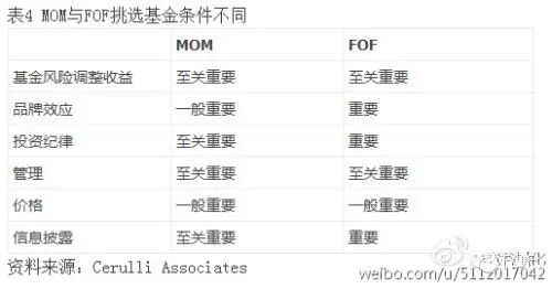 同样作为多管理人基金,MOM和FOF在运作管理上存在很大的差异,同时在挑选基金上也存在较大差异,我们在下面两张表中总结了这些异同。