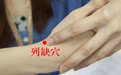 《黄帝内经》里记载,列缺穴主要治疗偏头疼、头疼、落枕等疾病。《针灸大成》中有一首脍炙人口的四总穴歌,其中一句为:“头项寻列缺。”就是说脖子往上的病都可以用这穴位来治疗和调节。列缺穴很好找,在桡骨茎突上方,腕横纹上1.5寸。取穴时两手虎口交叉,当食指尖所到凹陷处,便是该穴。用列缺穴的手法主要是弹拨。