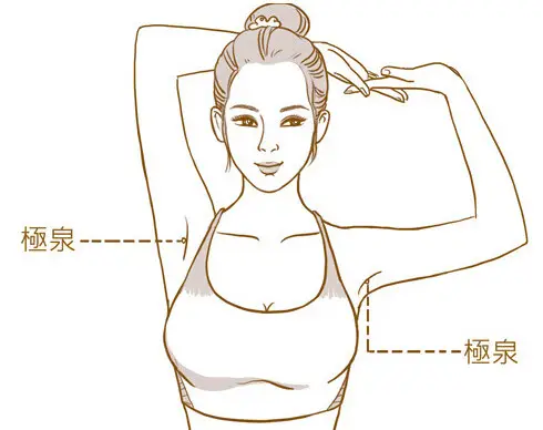 腋窝的极泉穴是心经的重要穴位,可以去心脏的郁火毒素,应常常去按揉,以疏通这口井。
