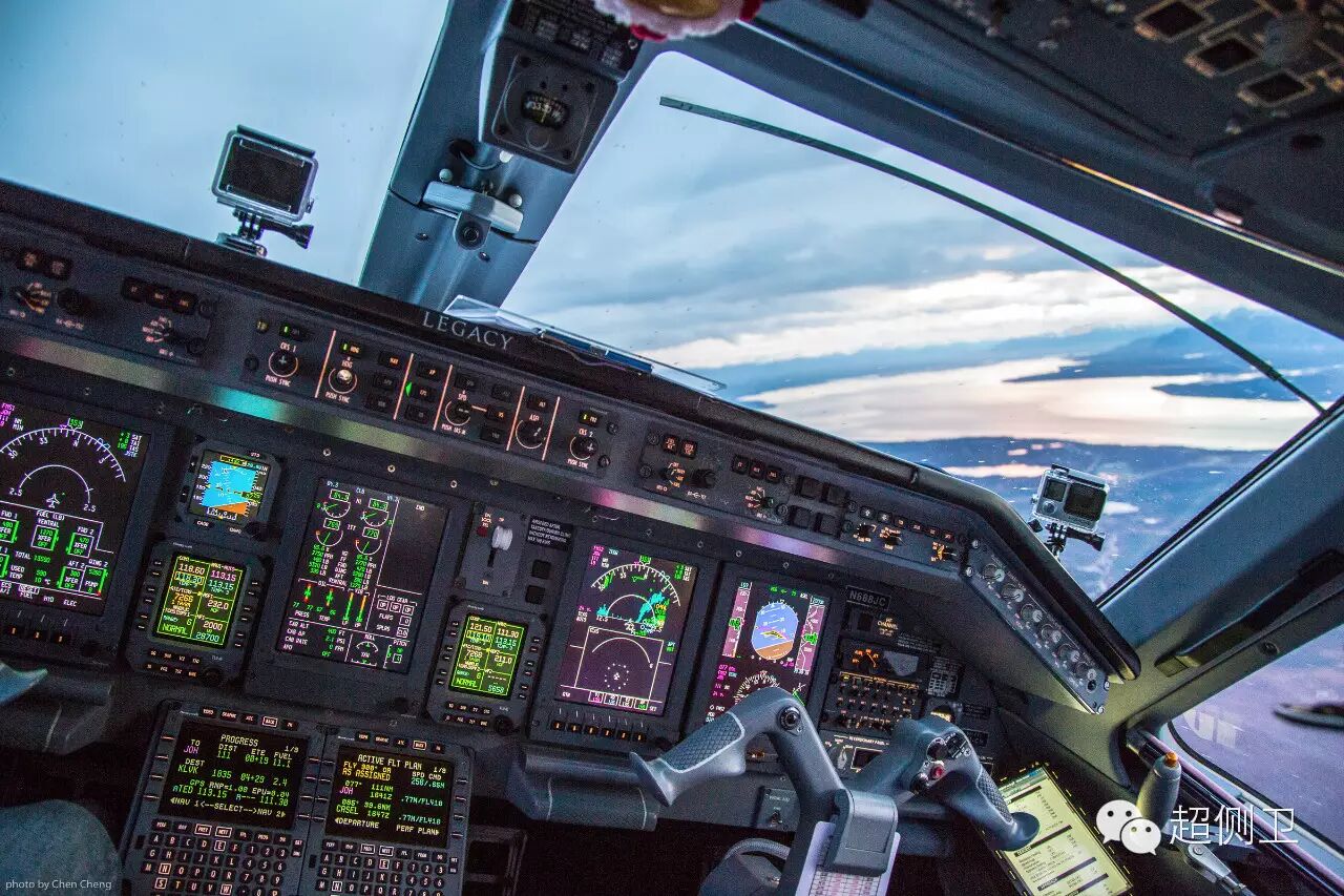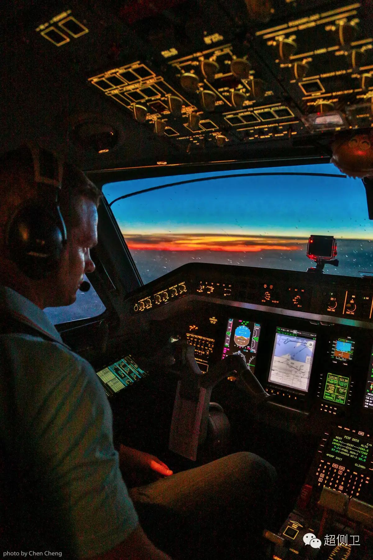 起飞之后就天黑了,一行人都各自在座位上睡去。日出前,乘务员过来轻轻把我叫醒,提醒我可以进驾驶舱看日出了。这时,我看见机长丹尼尔还在认真的研究降落路线。