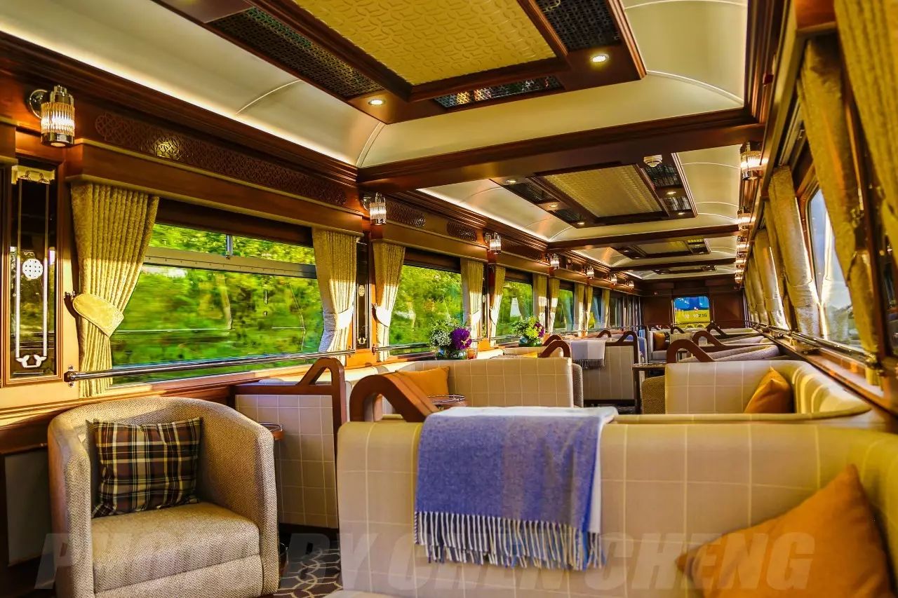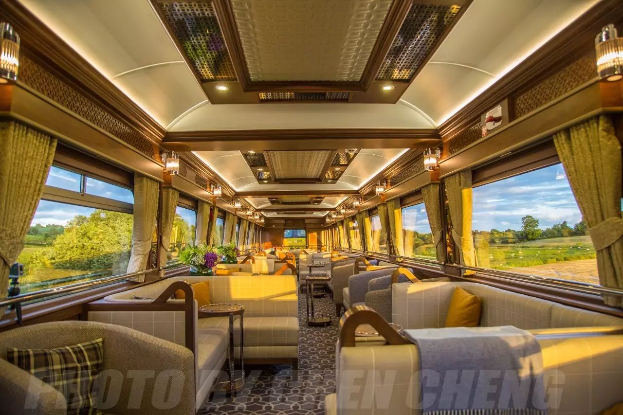 每节旅客车厢都只有4个包厢,最多供8为客人使用;在列车上后三节车厢是公共空间——空间明亮的Wexford以爱尔兰图案和斜纹软呢面料装饰,Sligo则是洋溢乔治亚风格的典雅餐厅,以令人放松的灰色调和温暖木色调为主。车尾的观景车厢Kildare融合爱尔兰沙龙的温暖气氛,交错的沙发椅与茶几是最好的社交场所,几乎所有的客人都愿意在这里度过车上的闲余时间,全天运营的酒吧也在这里,你几乎可以尝遍爱尔兰以及苏格兰所有的威士忌,也可以点上你最钟爱的鸡尾酒。