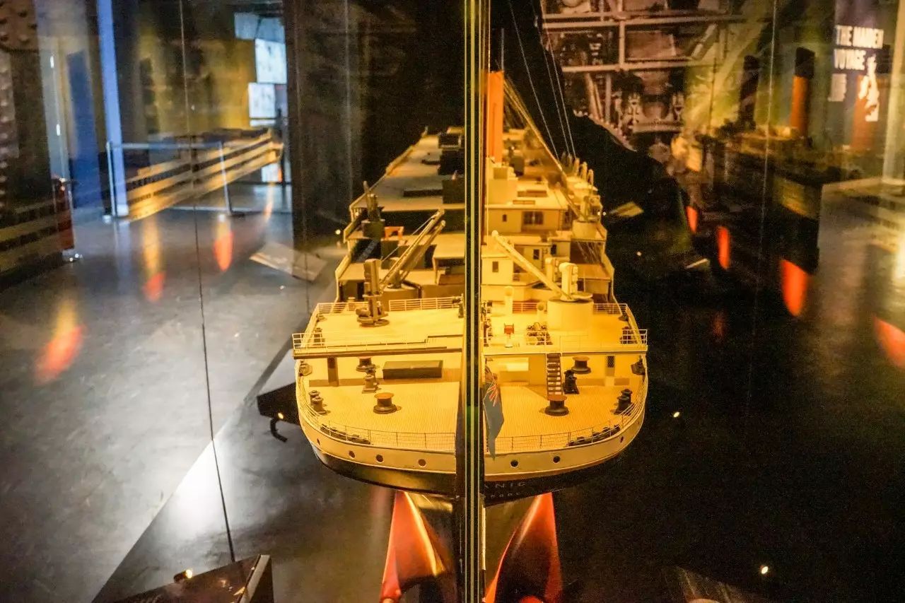 Hibernian的客人们开放。博物馆在墙壁上标注着这里制造的每一艘远洋轮船,其中带白色五星旗帜的船名就是大名鼎鼎的白星邮轮的成员,它们的名字都以C结尾,在一连串名字的末尾,你会找到馆外雕塑相同的名字——泰坦尼克。你可以在影像的丛林中漫步,了解那个时代贝尔法斯特的城市繁荣景象,浏览当年的设计图纸,亲手尝试发送电报,或是在钢架模型上走动,体验当年造船工人在超过9层楼高得地方工作的情景。在展览的末尾,收藏着关于这场著名事件所有的信息,在观影室中,你可以看到海底机器人拍摄到的沉船影像。