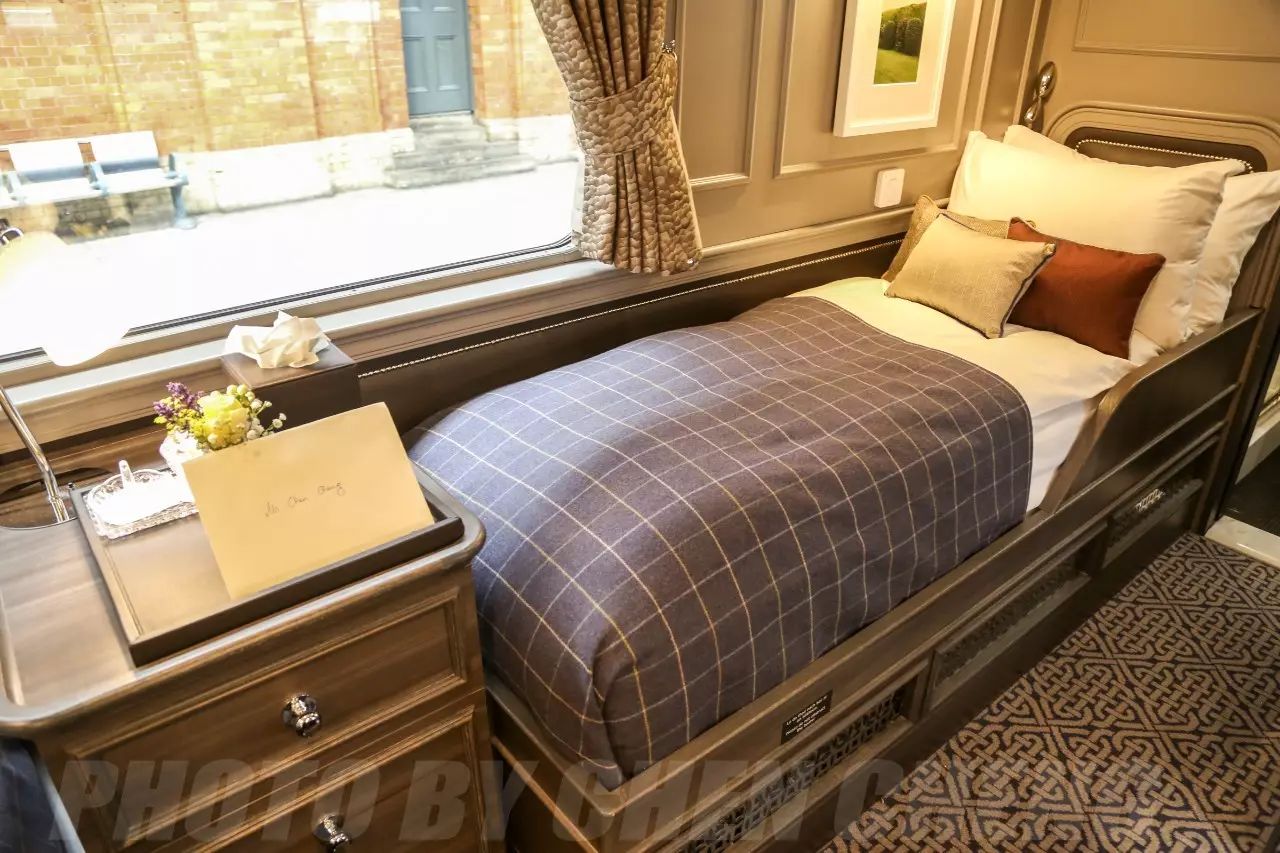回到你的包厢,你的行李已经妥善地安放,充满温馨气息的包厢内带有淋浴与厕所,温馨的床铺上是爱尔兰风格的粗呢织物,小巧的台灯与装饰画让房间更加温馨。列车上的包厢有两张单人床的Twin Cabin和一张双人床的Double Cabin两种;对于单人旅行的乘客而言,车上还有两间单人间,但是一旦售完乘客就需要支付额外的一笔费用使用双人间。