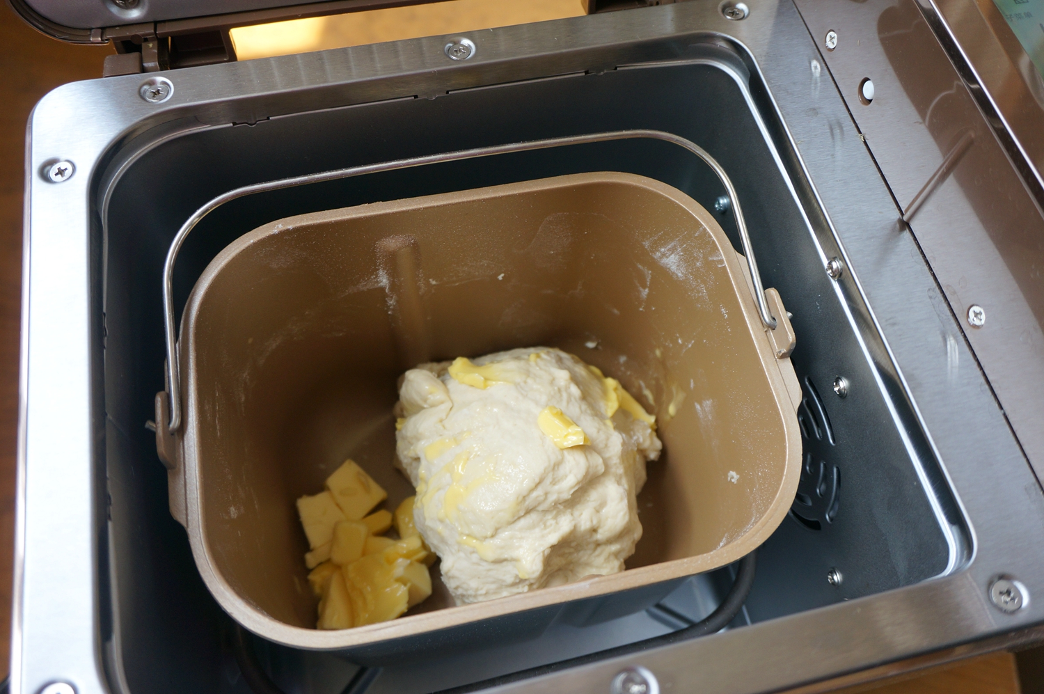 说干就干,称好材料,准备好面包机,前十分钟看一下,将黄油扔进去,然后该干嘛干嘛去,一点儿不耽误做其它事,就等着提示音响起,将新鲜出炉的大面包倒出来晾凉封袋了。