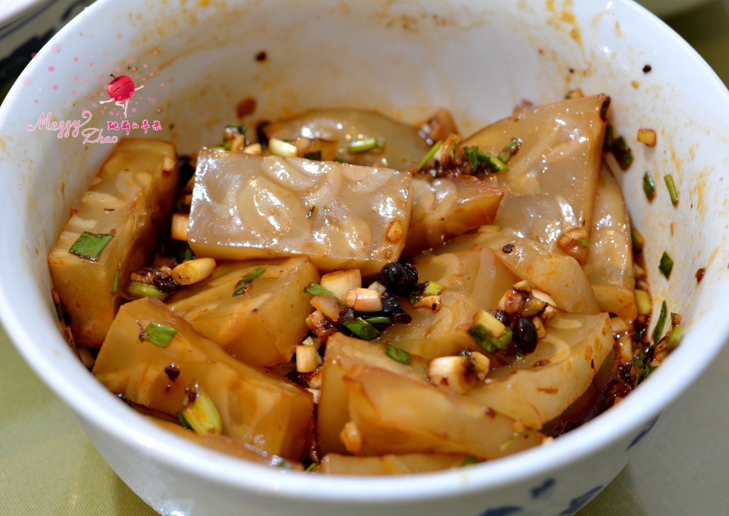 老干妈拌肉皮冻,前天做好的,一碗可以吃两大顿。今天早上刚刚发了食谱。感兴趣的朋友可以关注我,进头条号能看到详细的制作步骤。