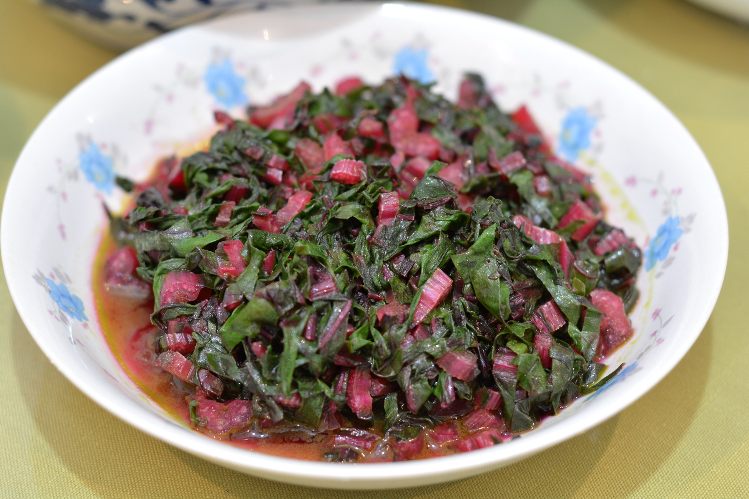 这道粉粉的菜是清炒甜菜。那天去菜场,小贩摆了一大堆没人买,因为好多人不认识这个菜。我搭腔说这是甜菜,还给大概说了两个做法,呼噜噜,眼瞅着卖了一半。小贩夫妇俩高兴,卖别人3块钱一小捆,卖我5块钱两小捆。哈哈~~