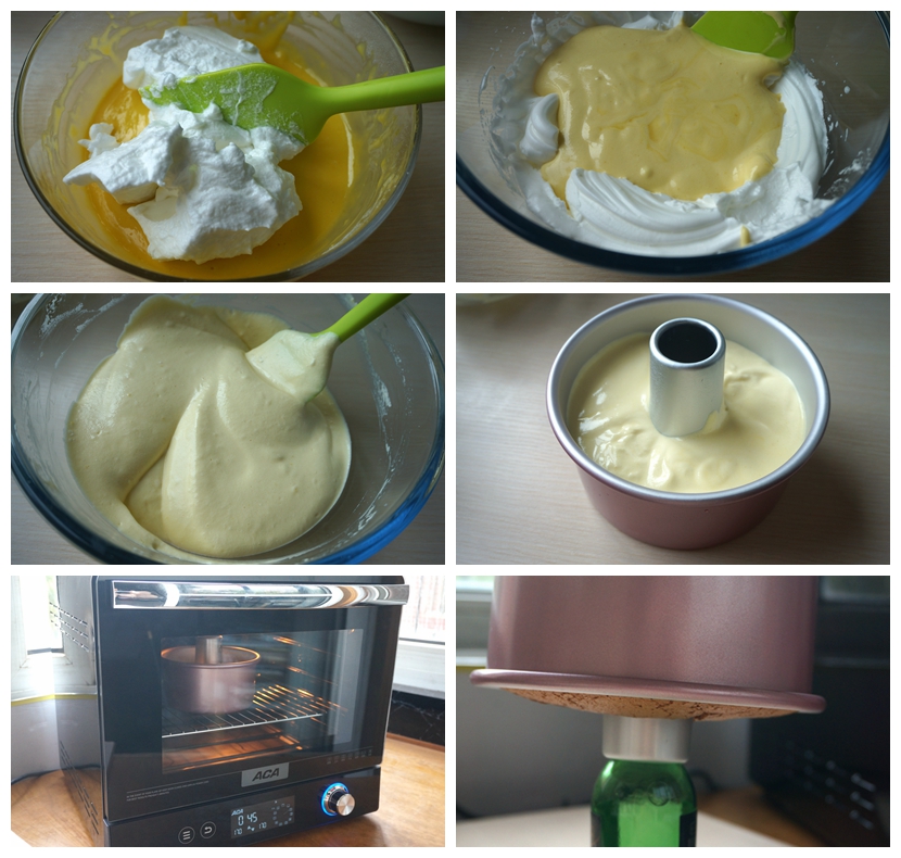 12. 用上下翻拌、切拌的手法混合均匀,再倒回到蛋白糊盆中;