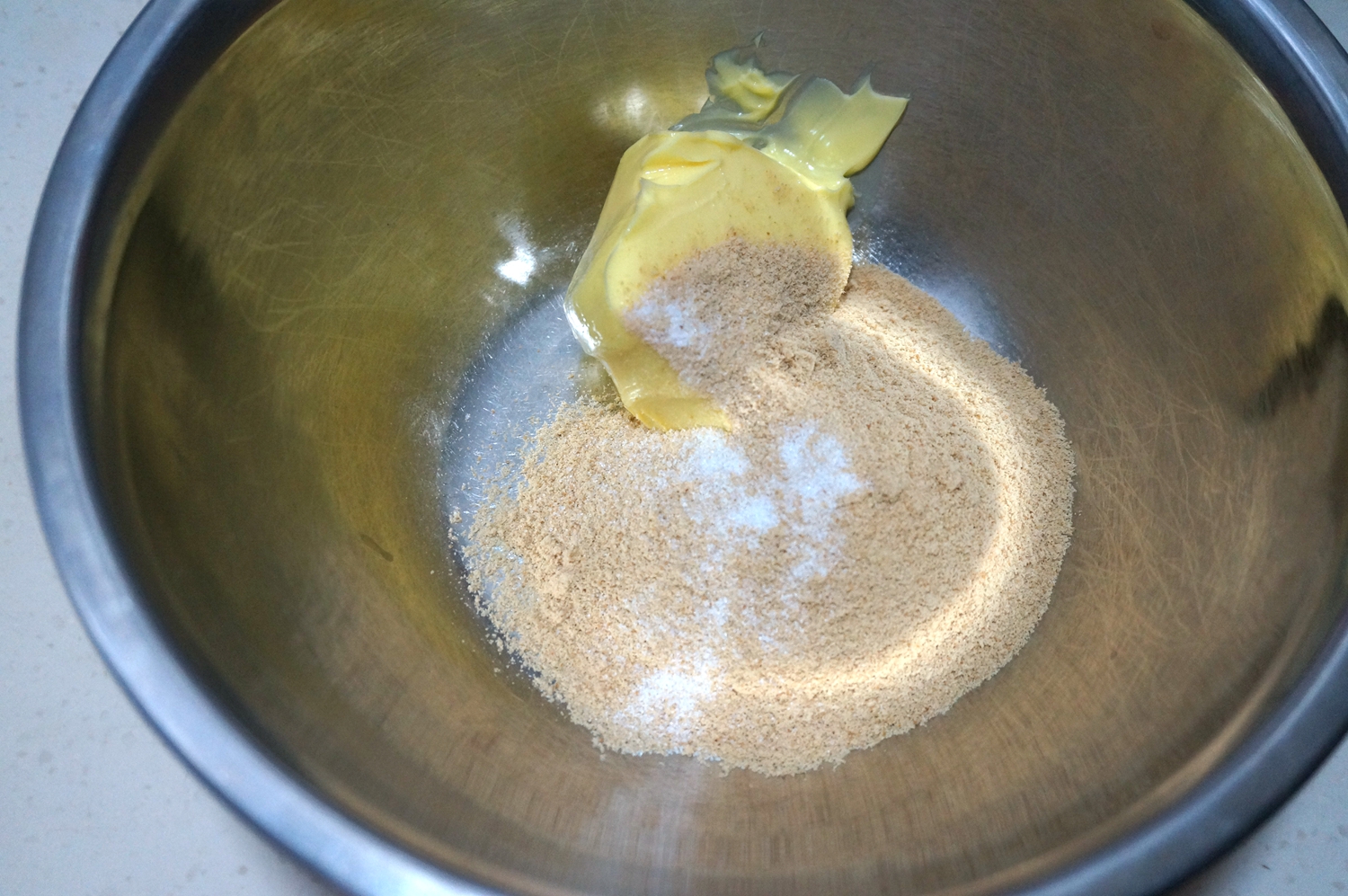 材料:无盐黄油80克,过筛的红糖50克,盐1克,全蛋液35克,低筋面粉100克,杏仁粉25克