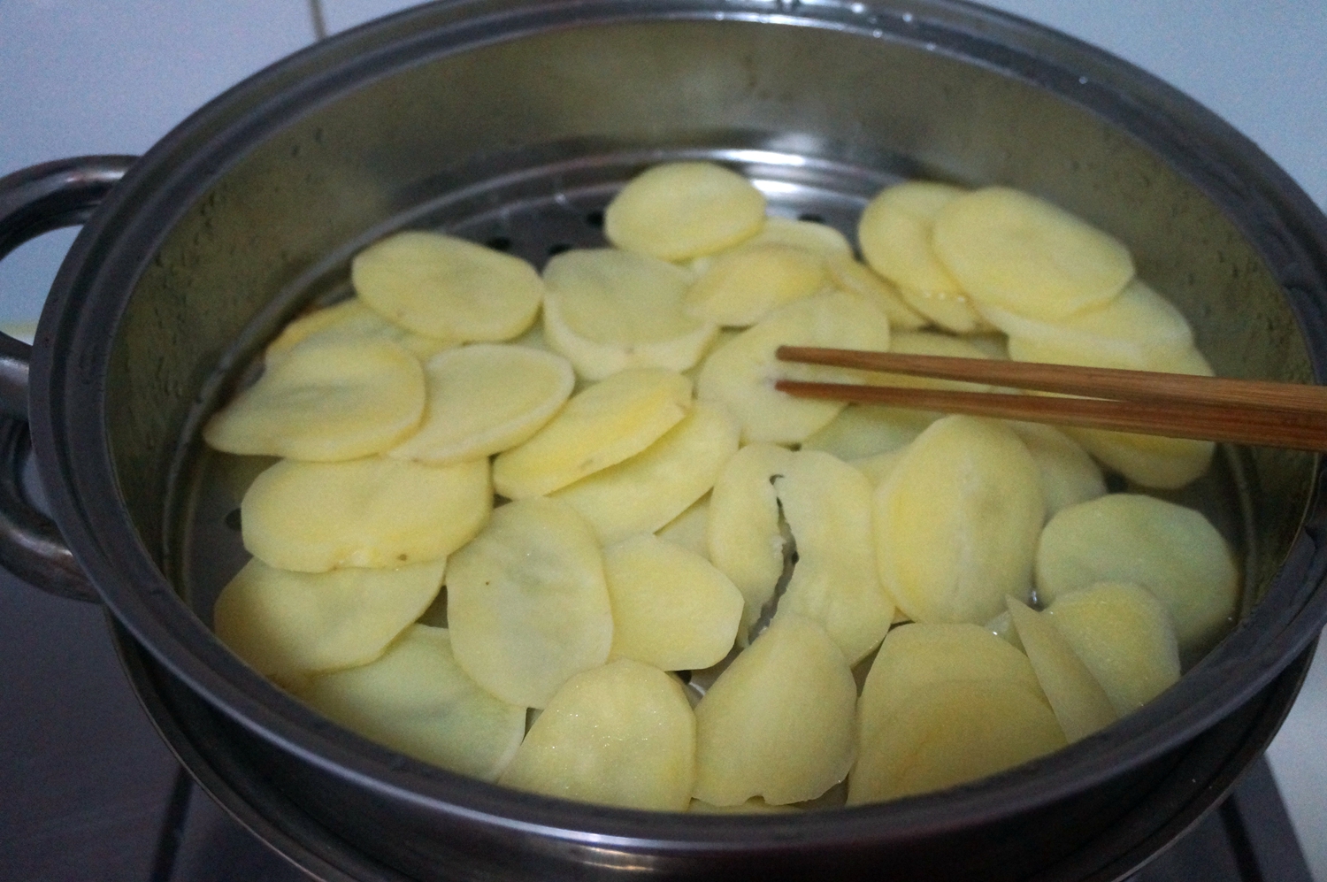 材料:中小土豆6个,油少许,香葱一把,大蒜3瓣,生抽少许,蚝油少许,盐少许,淀粉一小勺,水适量