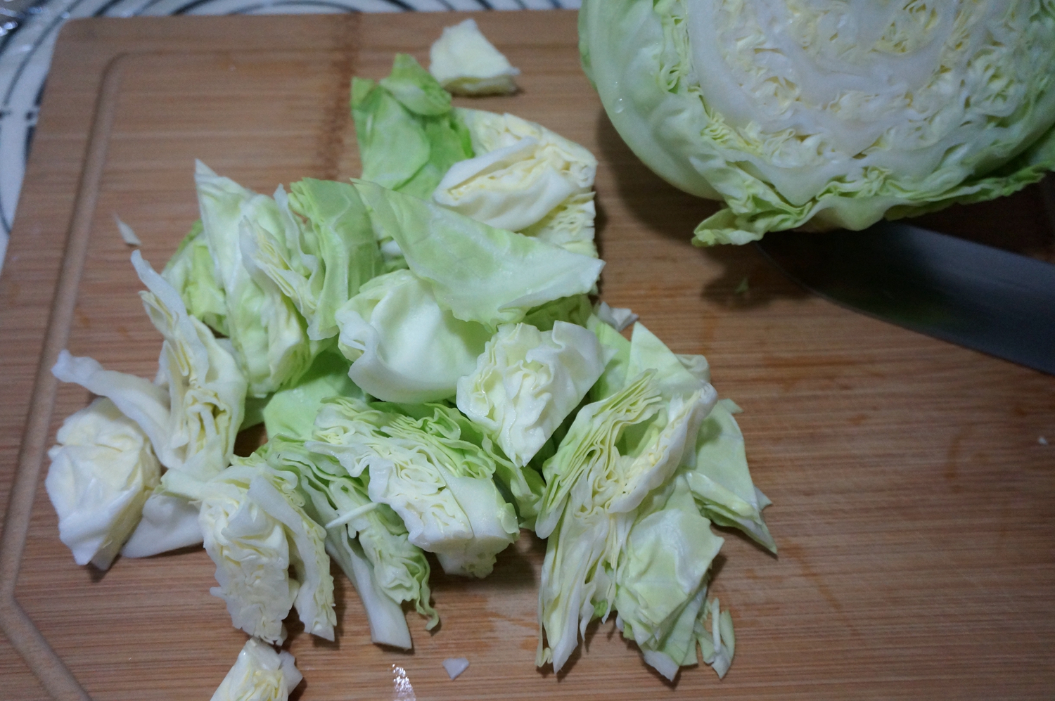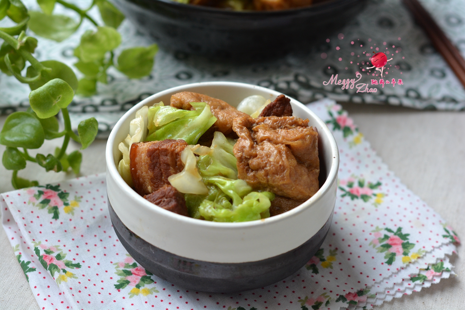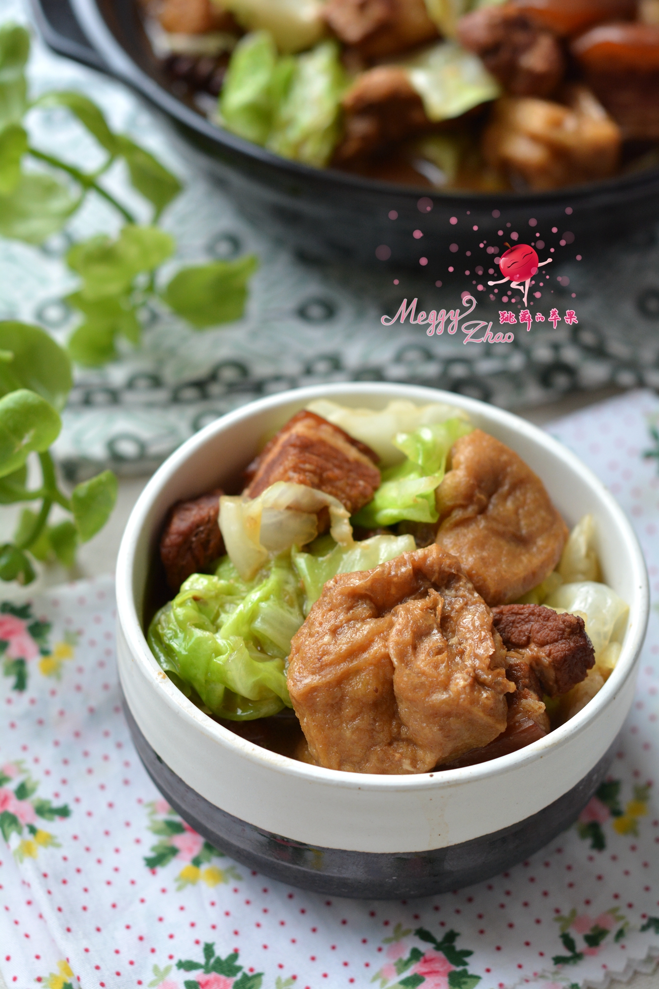 【五花肉炖圆白菜豆泡】