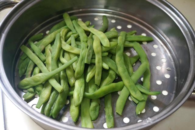 2. 豆角一定要充分煮熟再用,这样蒸的时候就不用太长的时间了,否则不熟的豆角易中毒;
