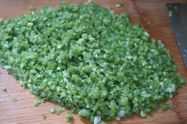 5. 切碎剁末,里面有些豆角汁,不要攥,全是营养;