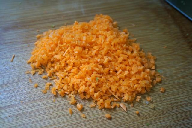 胡萝卜是脂溶性的食物,有点油能充分将胡萝卜素转化成维生素A,对眼睛特别的有好处。加了半根,蒸饺的味道还有些甜,显得这馅更鲜了。