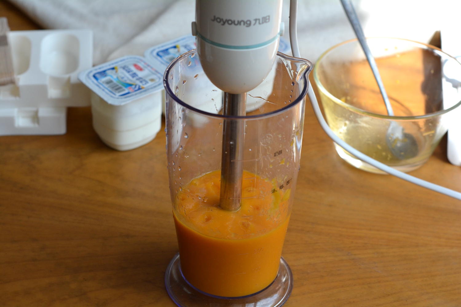 材料:酸奶200克,中等芒果两个,淡奶油100克(材料只有三种,比例可以随意调整一下,淡奶油主要是增加醇香口感)