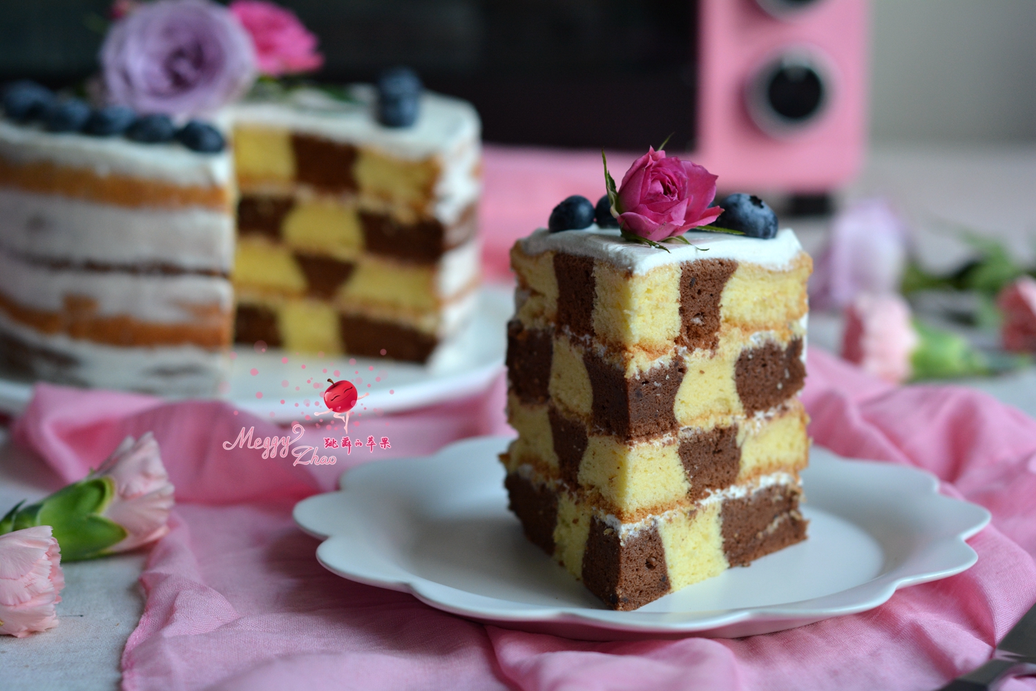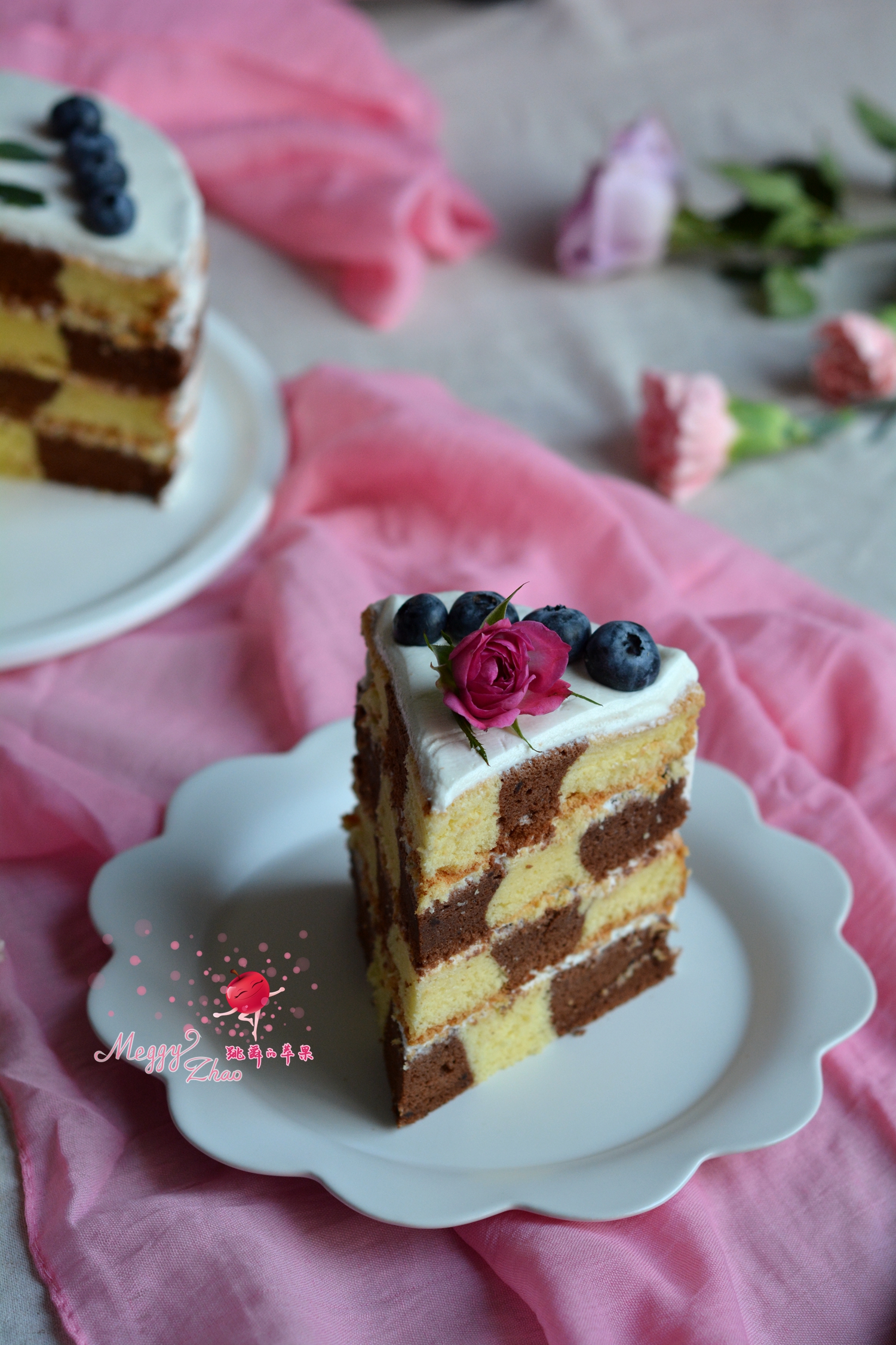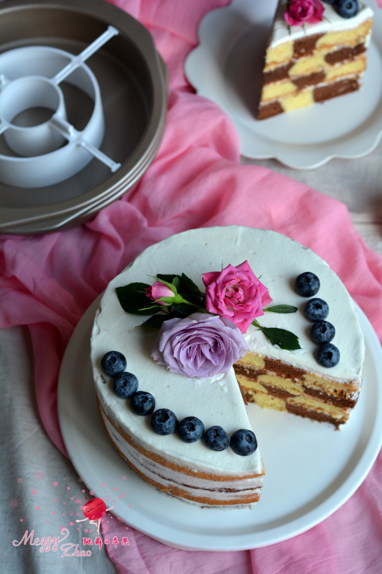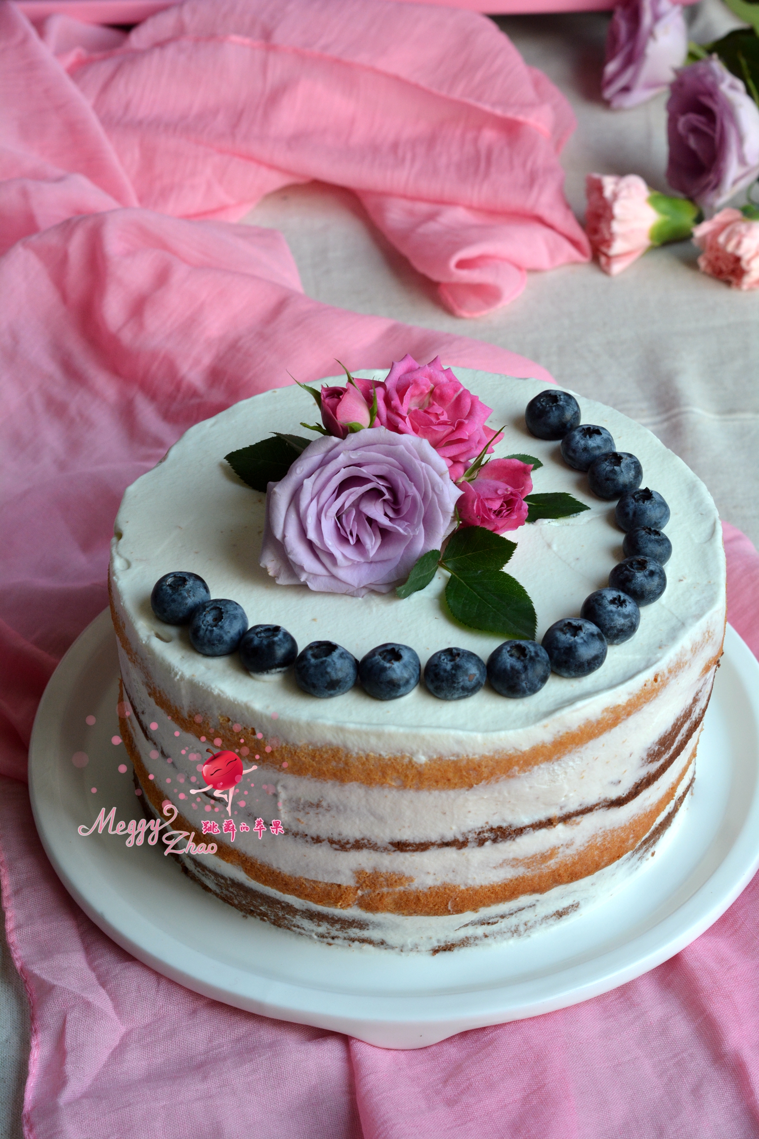抹面不拿手,但是做个简单的裸蛋糕还是可以的,上面一层可以略微铺点奶油,用鲜花水果进行装饰即可。鲜花是花瓶里随手拈来的,因为不能确保是不是可食用的,所以除了清水冲洗一遍后,再把花枝处用保鲜膜包一下,这样就更稳妥了。