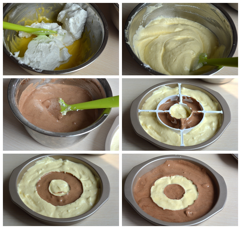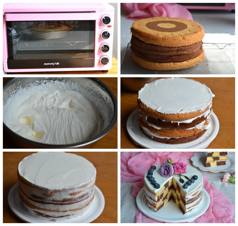 新烤箱进家,可劲儿的折腾吧!正好,我最近又入手了一套蛋糕模,可以分层做出彩色的来。我就直接做个原味和可可味的吧。模具是三个盘一套的,如果用一台烤箱会把制作的时间拉长,另外因为要牵扯到两种颜色的蛋糕糊,所以我用新旧两台烤箱同时烤,省事省时间了,而且还可以再增加一层,蛋糕显得更加丰富了。