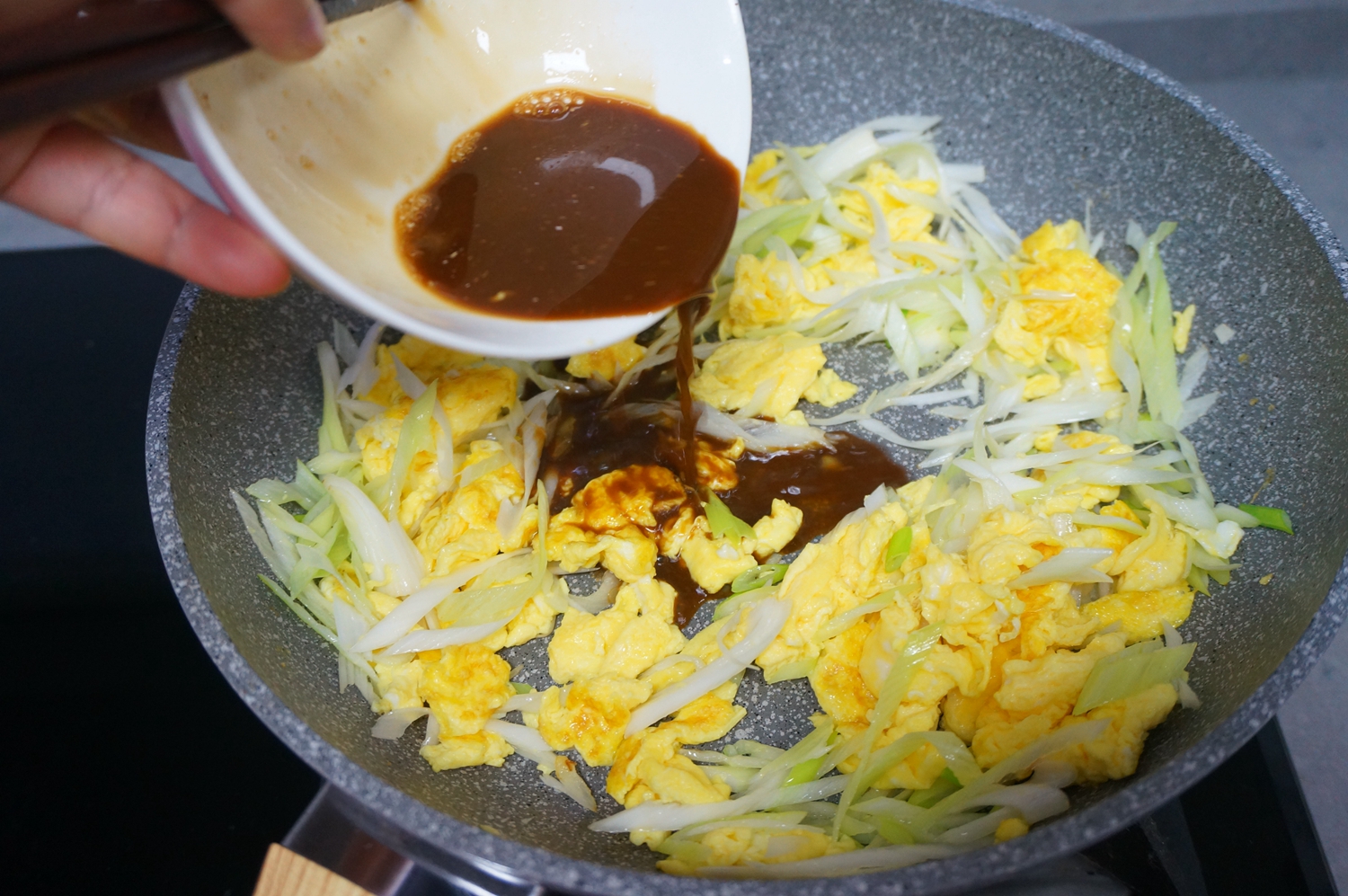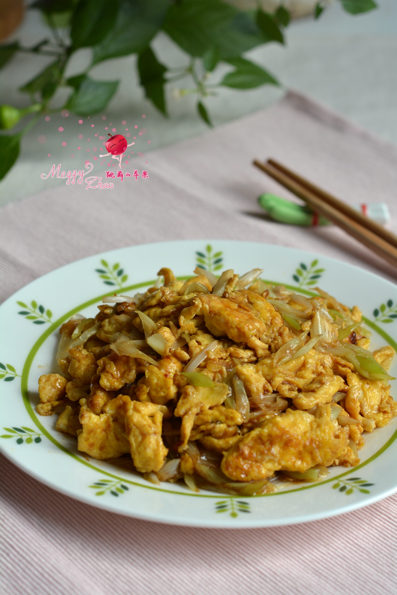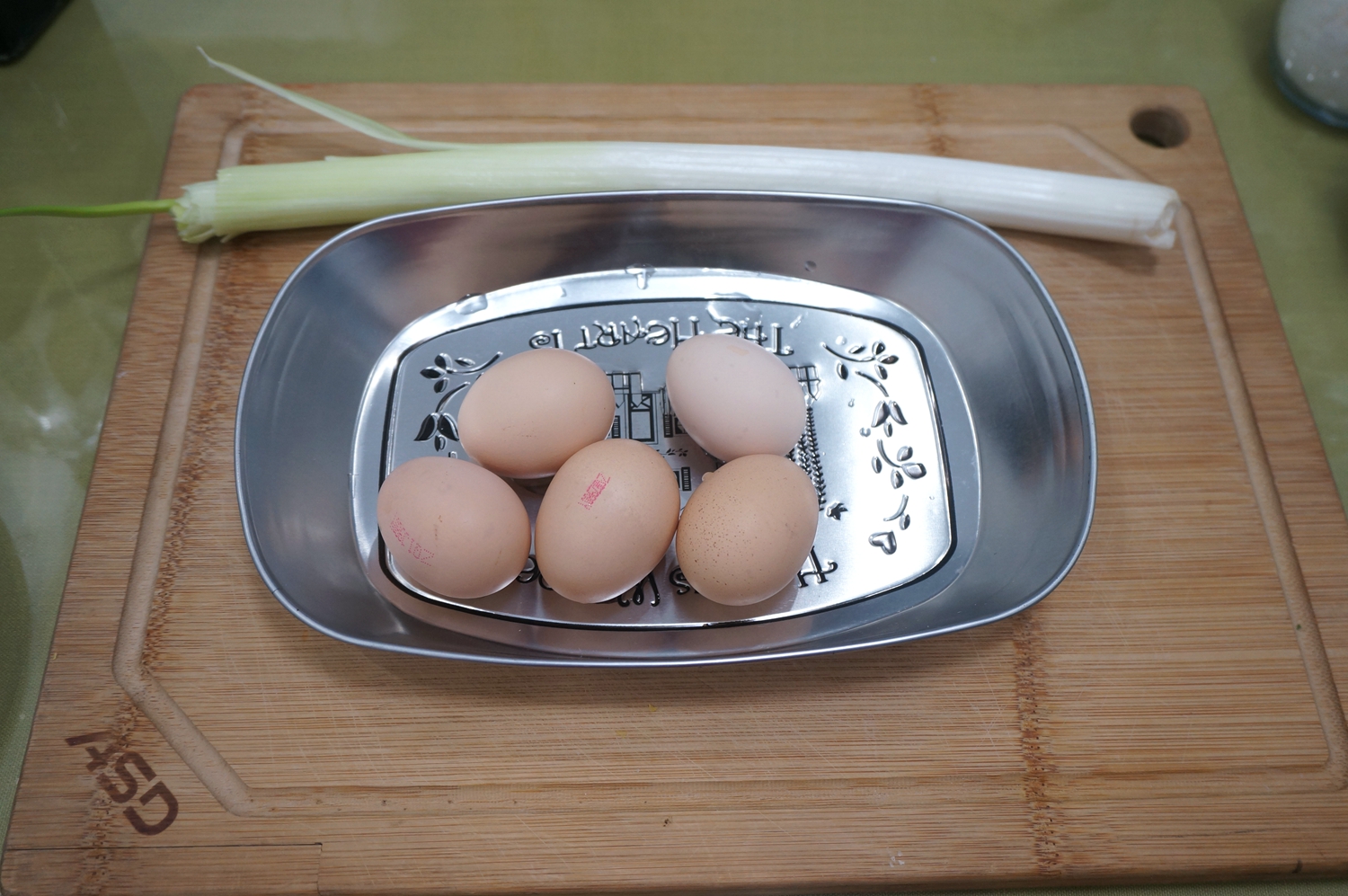 材料:鸡蛋5个,大葱1棵,淀粉1小勺,酱油适量、香醋适量,白糖一小勺,盐少许,植物油适量,凉水少许