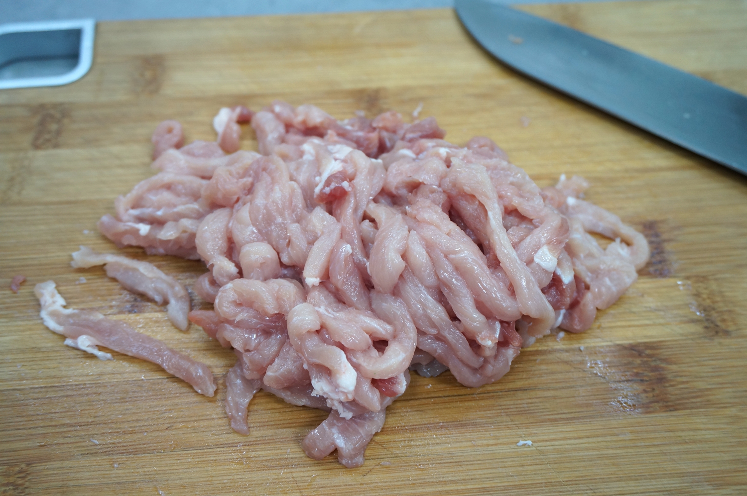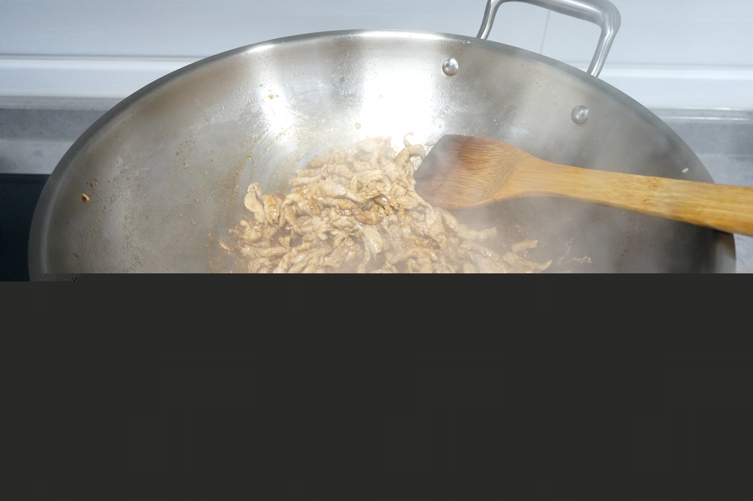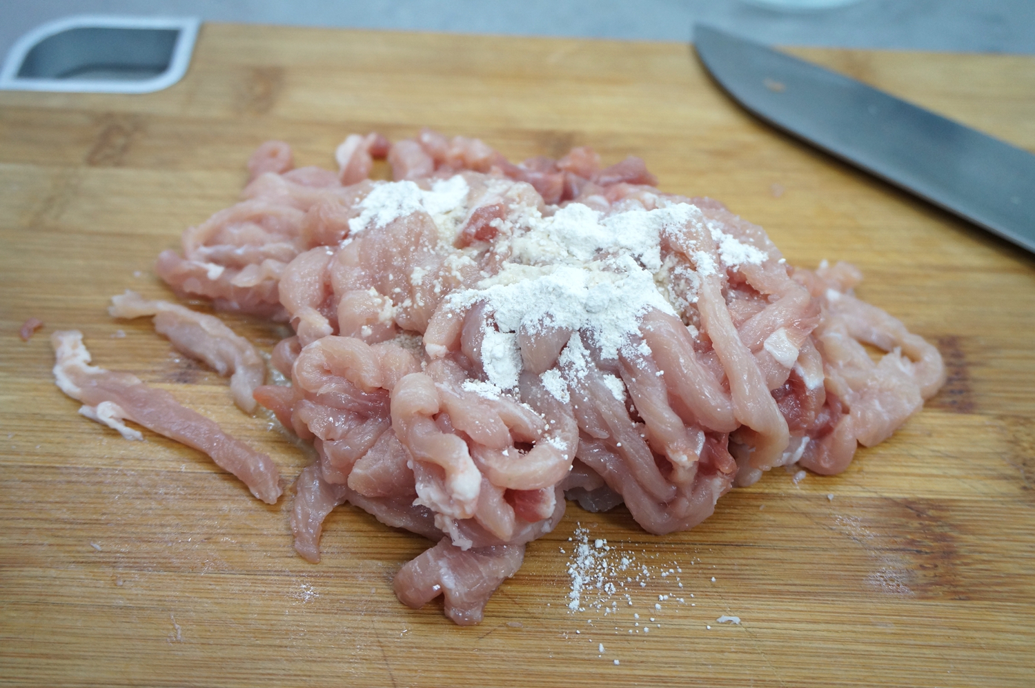 材料:猪肉150克,辣椒数根,红薯粉条一把,青蒜两棵,植物油适量,生抽少许,酱油少许,盐适量,淀粉一小勺,料酒少许