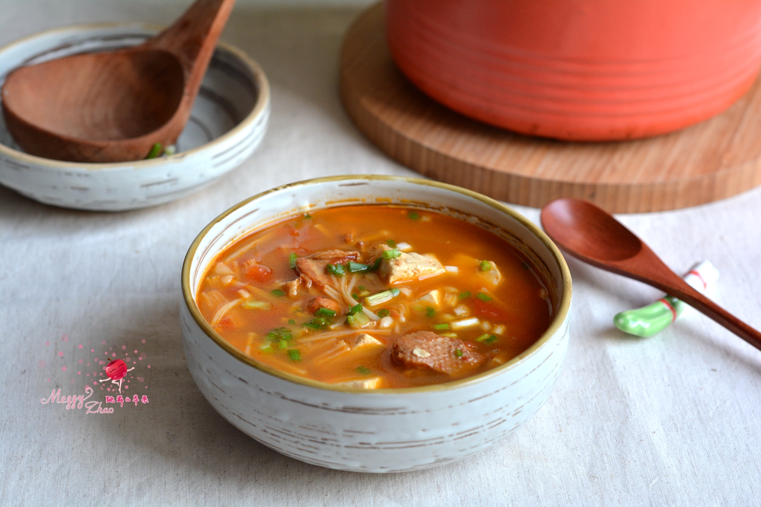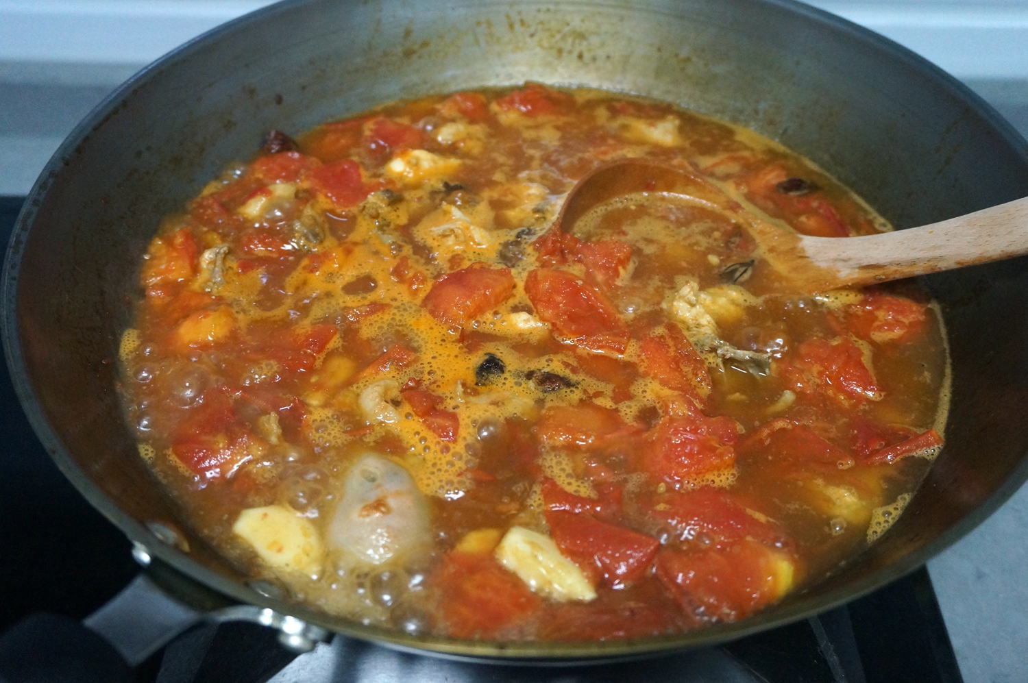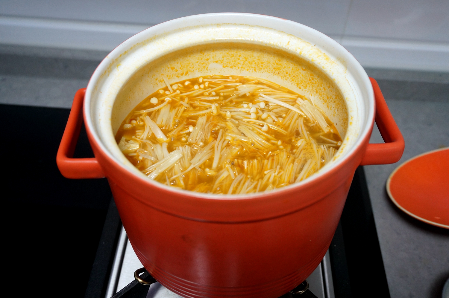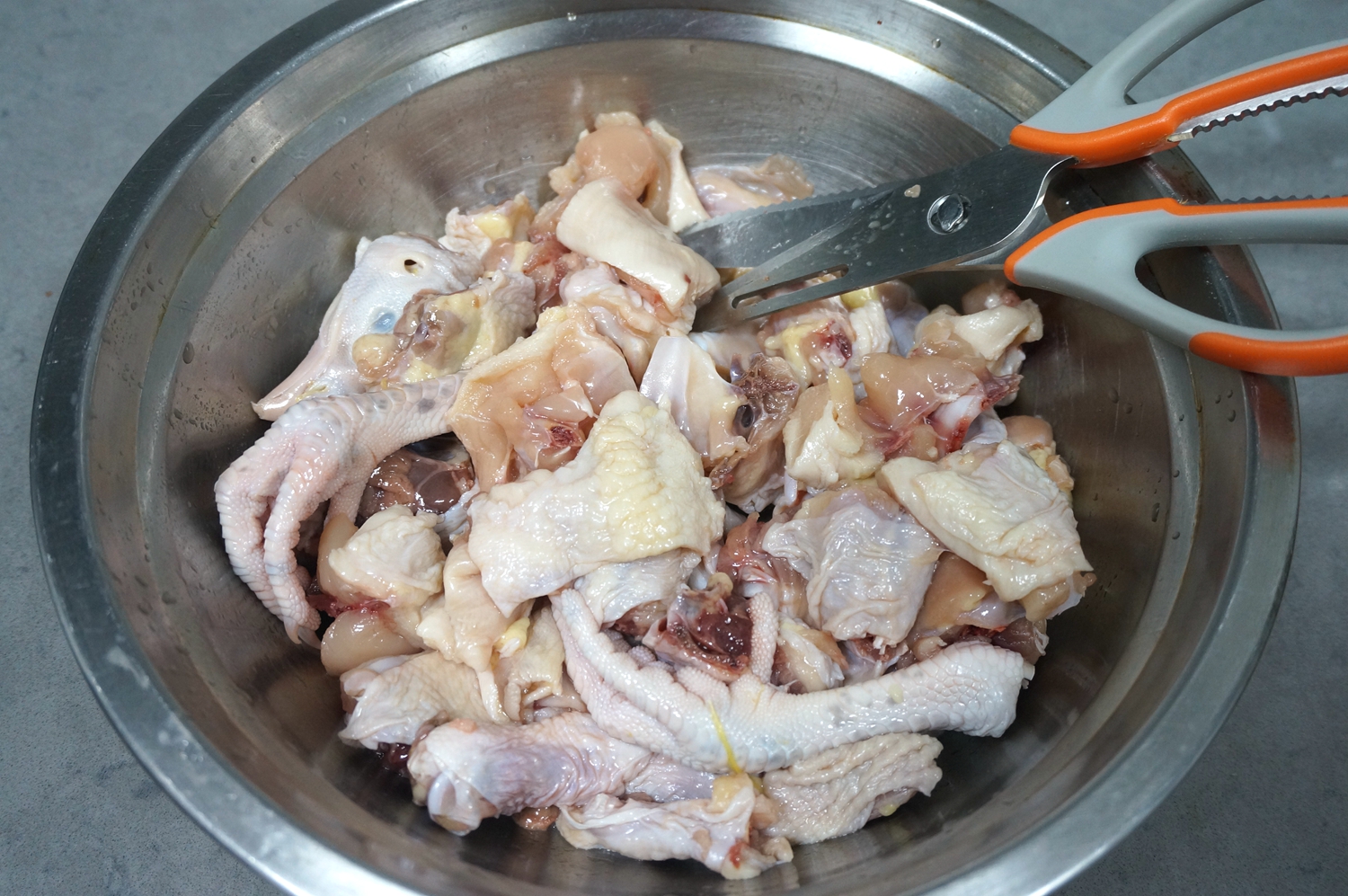 材料:1斤多重小鸡1只,西红柿2个,豆腐1块,金针菇1把,油少许,大蒜1头,生抽少许,酱油少许,盐适量,香葱少许