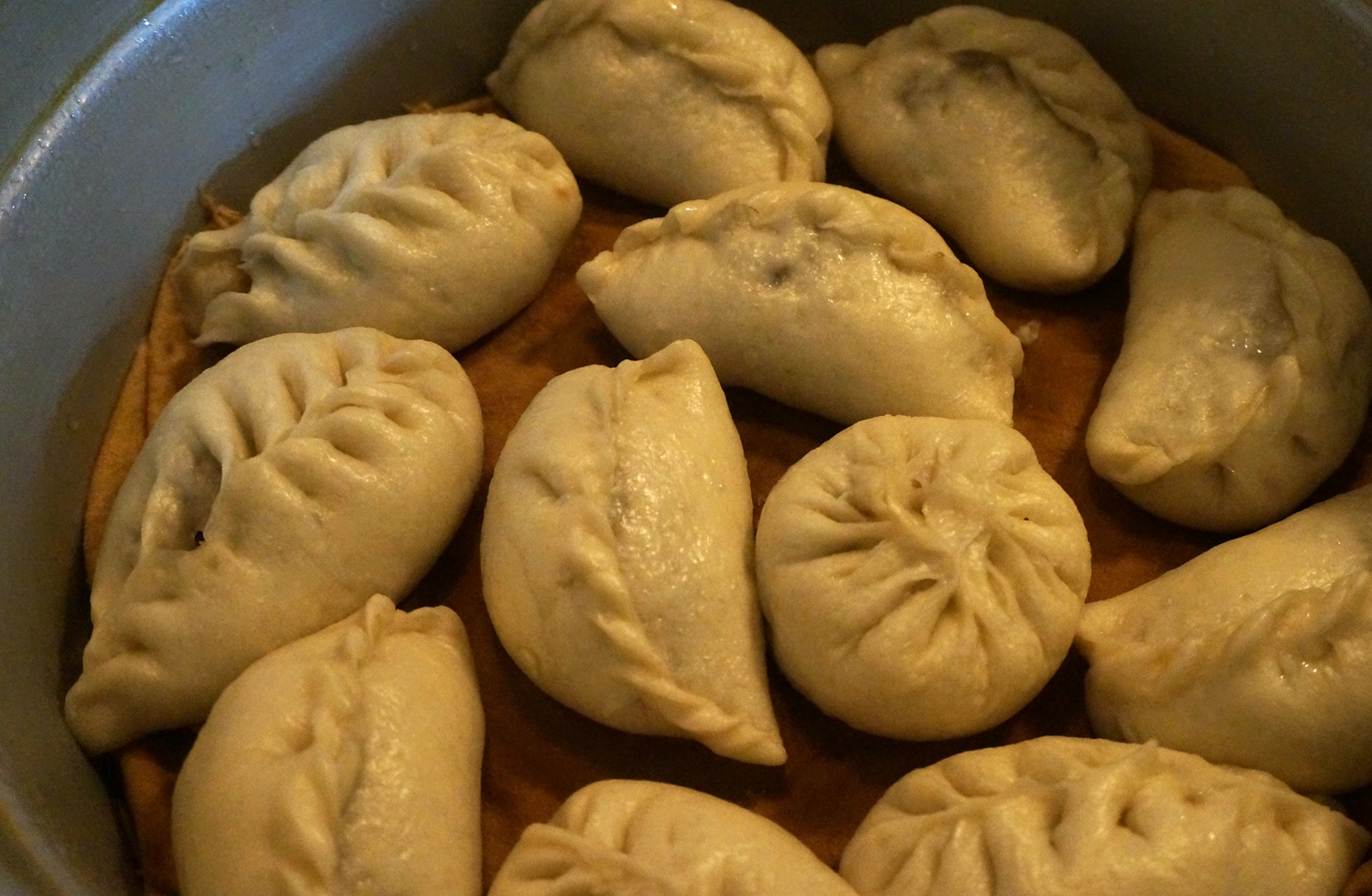 12. 大饺子放蒸锅内,盖盖子,饧20-30分钟左右,视天气冷暖情况来定,包子变得圆润了,就可以开火,上汽后,蒸15-20分钟左右,看包子大小来定时间;关火后,焖5分钟再开盖,防止骤冷而表皮收缩。