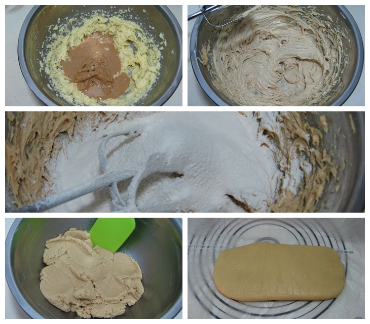 9、将面团团成一团,按扁后入冰箱冷藏40分钟左右,面团略微变硬;