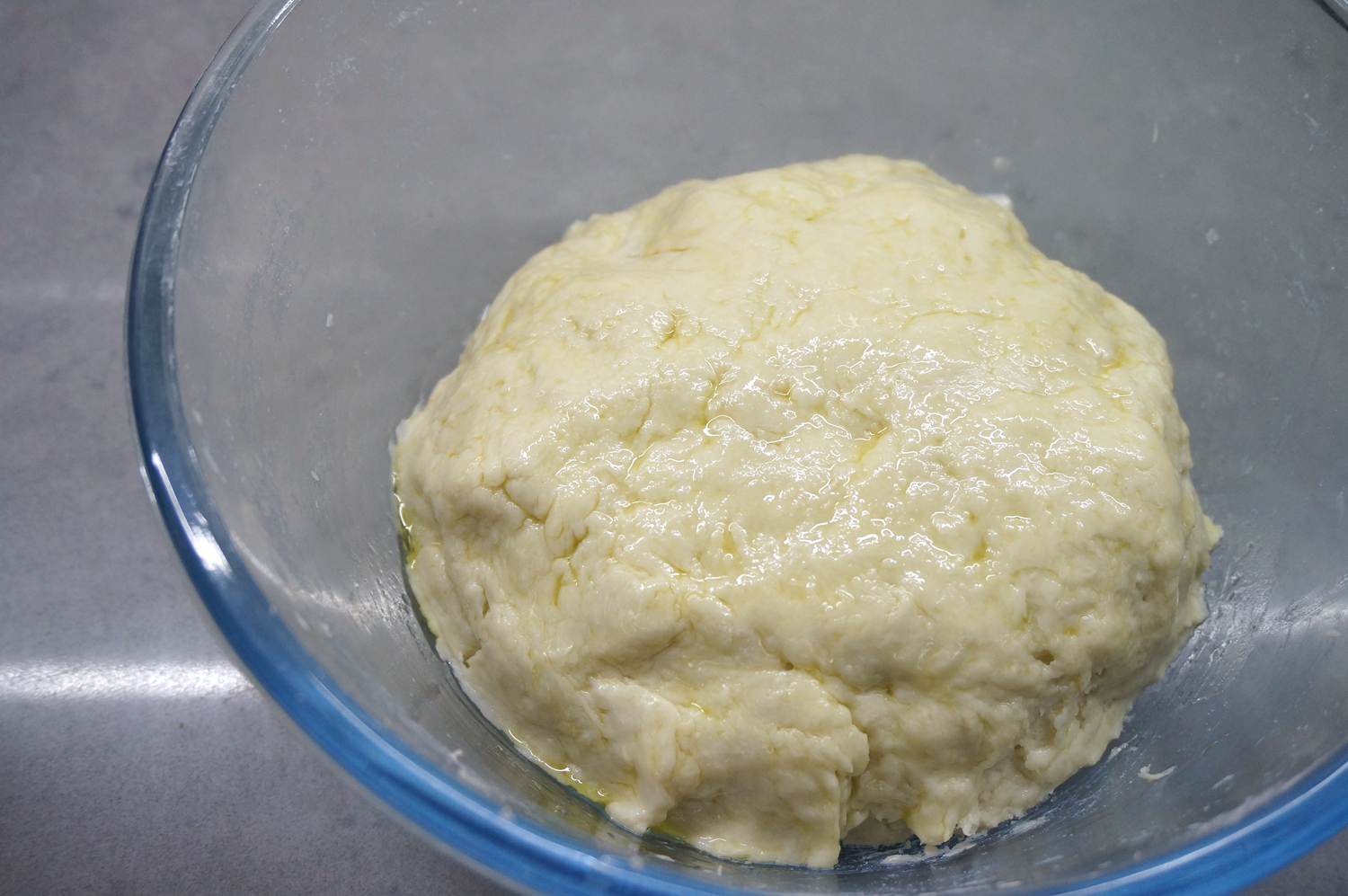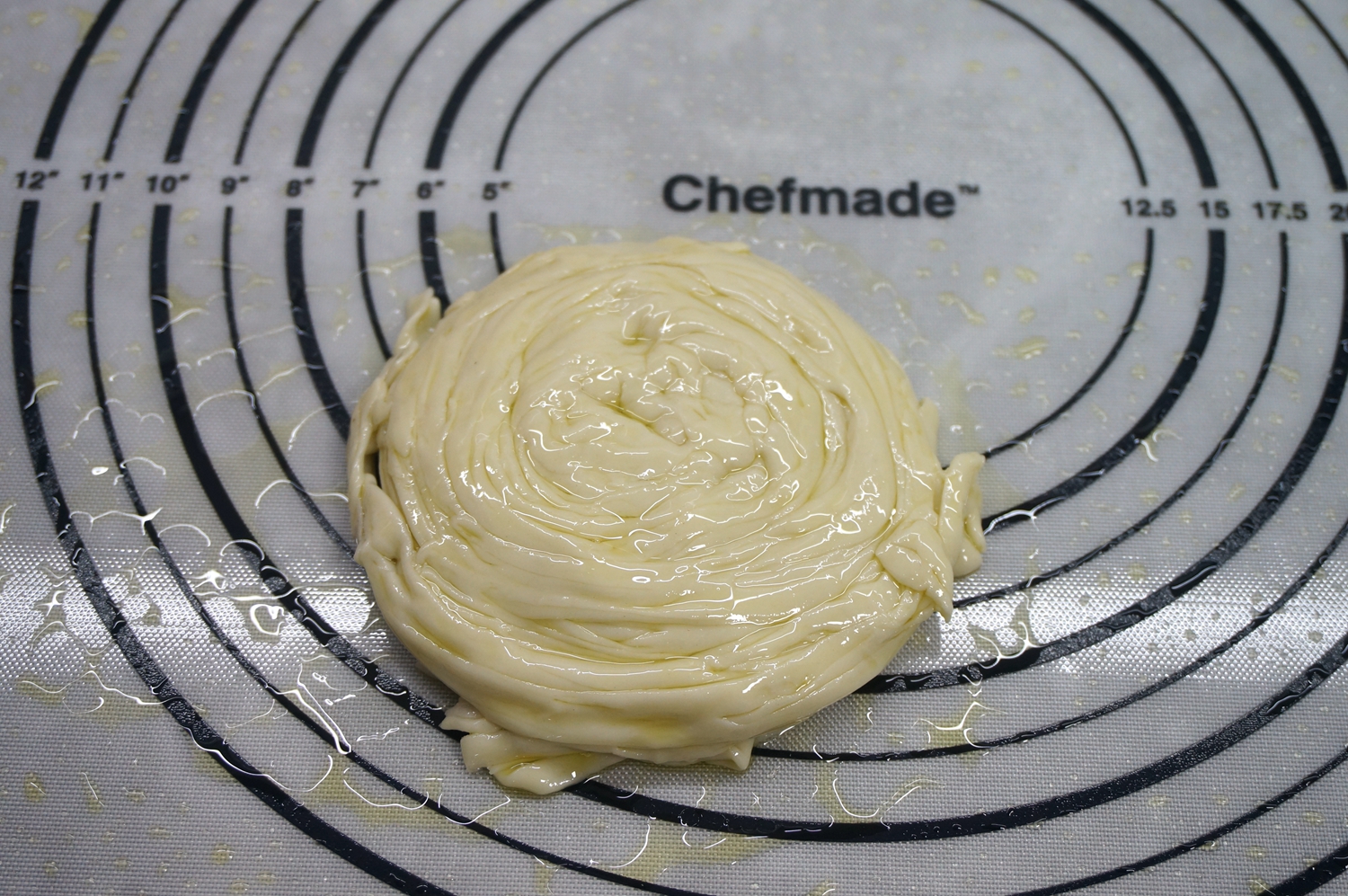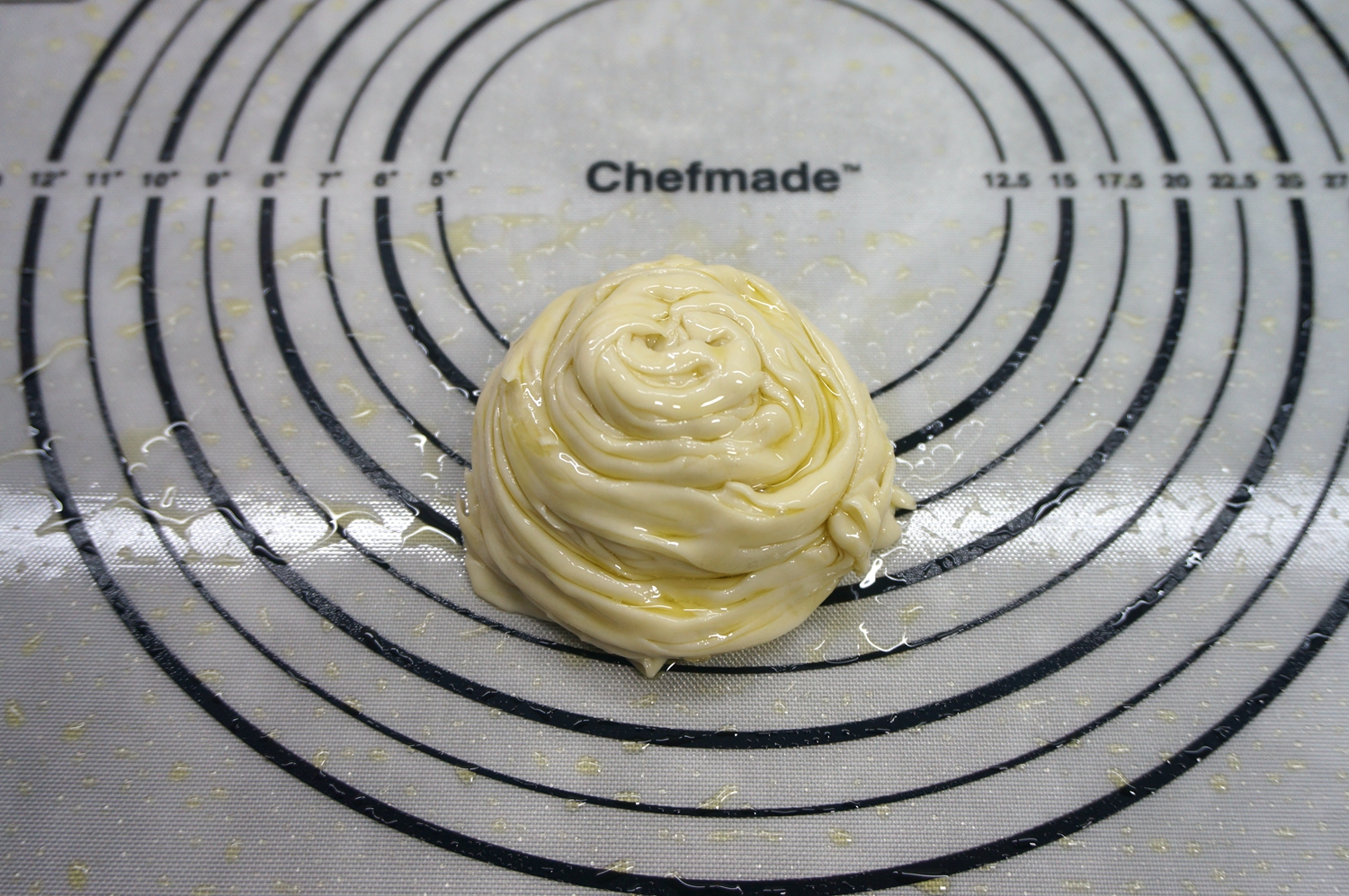 4. 饧好的面团放在揉面垫上,揉几下便光滑了;揉面垫比普通的木制或者竹制更好用,面团不会粘在板子上,如果用木制或者竹制案板,表面要尽可能光滑;
