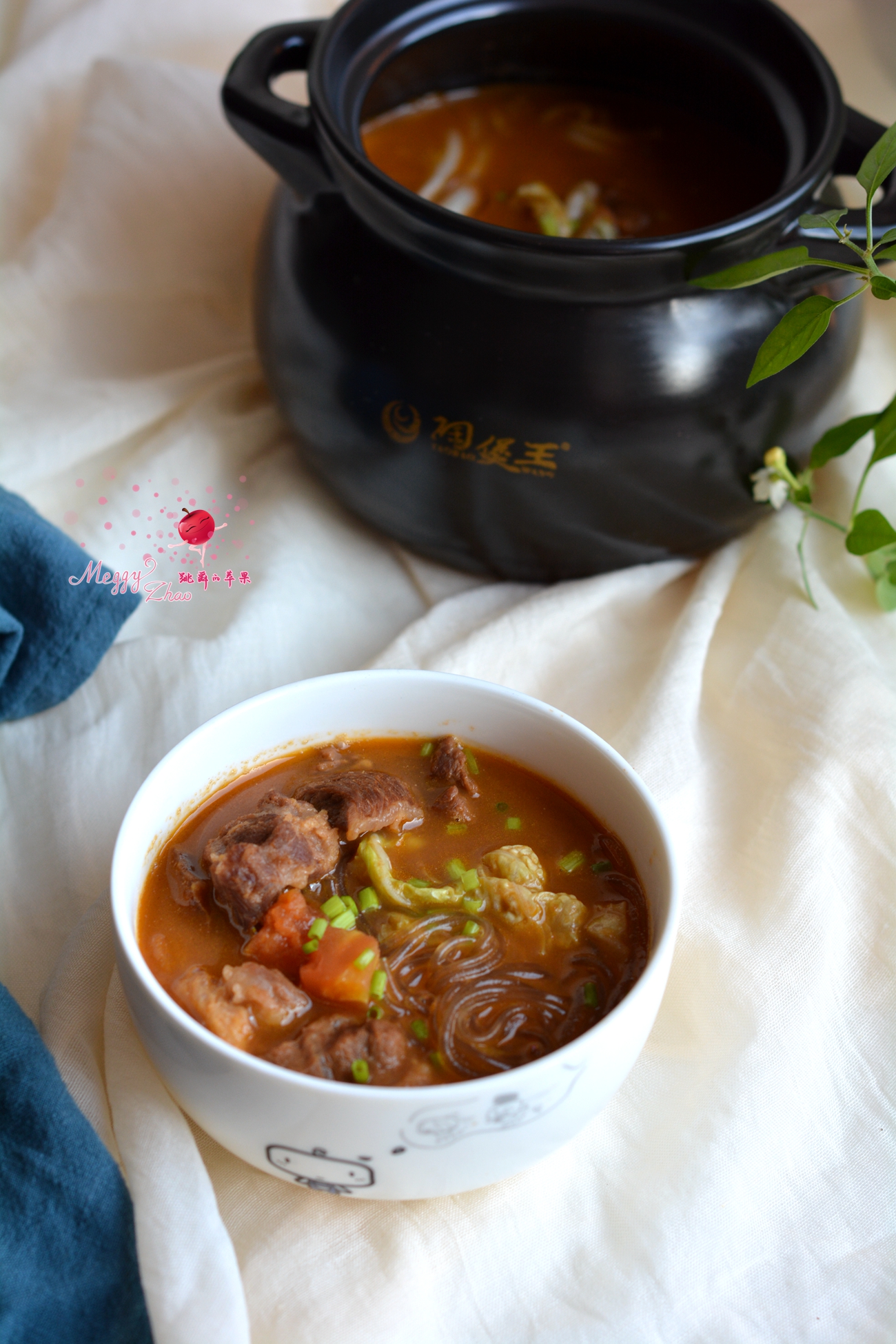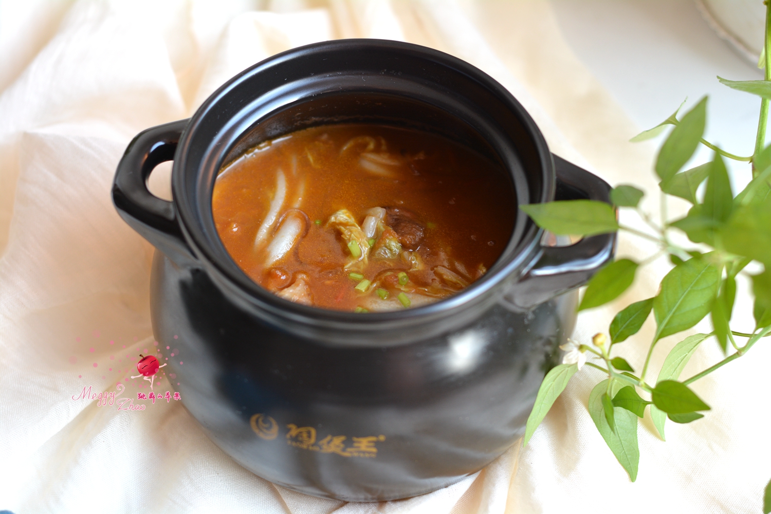 北方现在还没给暖气,天却一直阴沉沉的,没有阳光的日子,冷冷冷啊!所以一锅开胃的牛肉汤最能激发人的食欲,也能让身体很快暖起来。牛肉不易熟,所以最好用砂锅慢慢煲。因为砂锅的保温效果好,能起到密封焖熟的效果;另外再和西红柿同炖,西红柿中的酸也可以加速牛肉的成熟;起锅前加一把白菜叶,汤显得更浓稠也有营养;再来一把粉条,吸足了汤汁更有滋味。