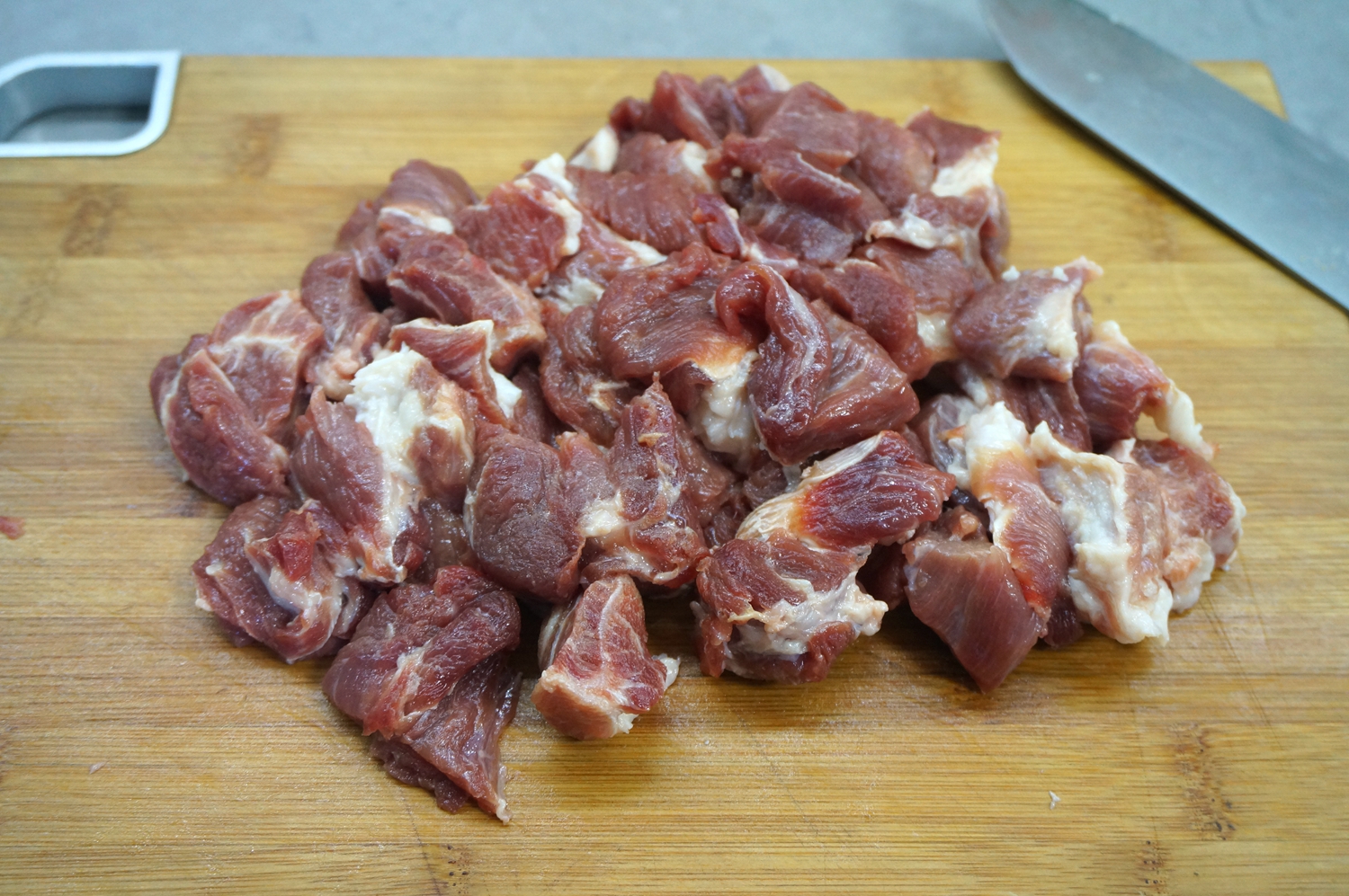 2. 切成3、4公分的大块,牛肉块大一点儿,吃着才过瘾;