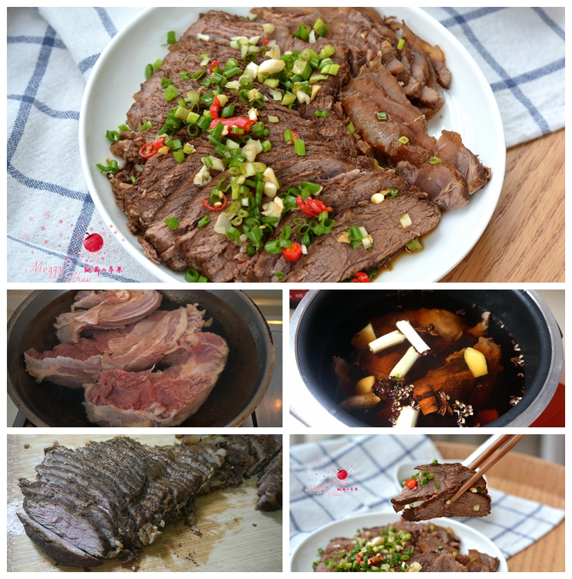 1.牛腱子顺着筋膜分成小点的块,泡凉水中两个小时,去掉多余的血水;入温水锅中,中火煮开;从滚开的地方捞出,避开浮沫,这样就不用再冲洗了;