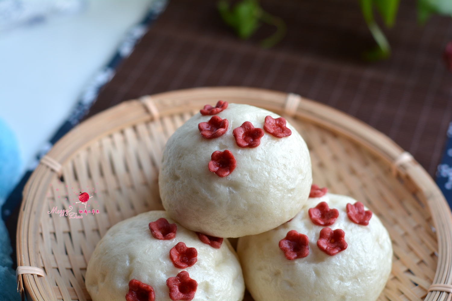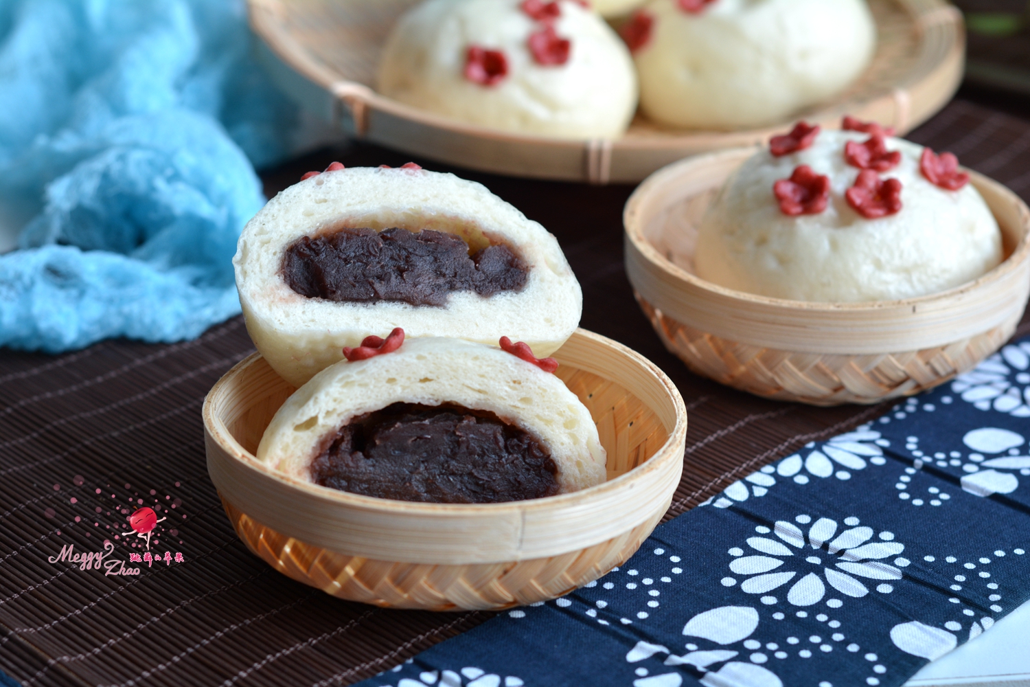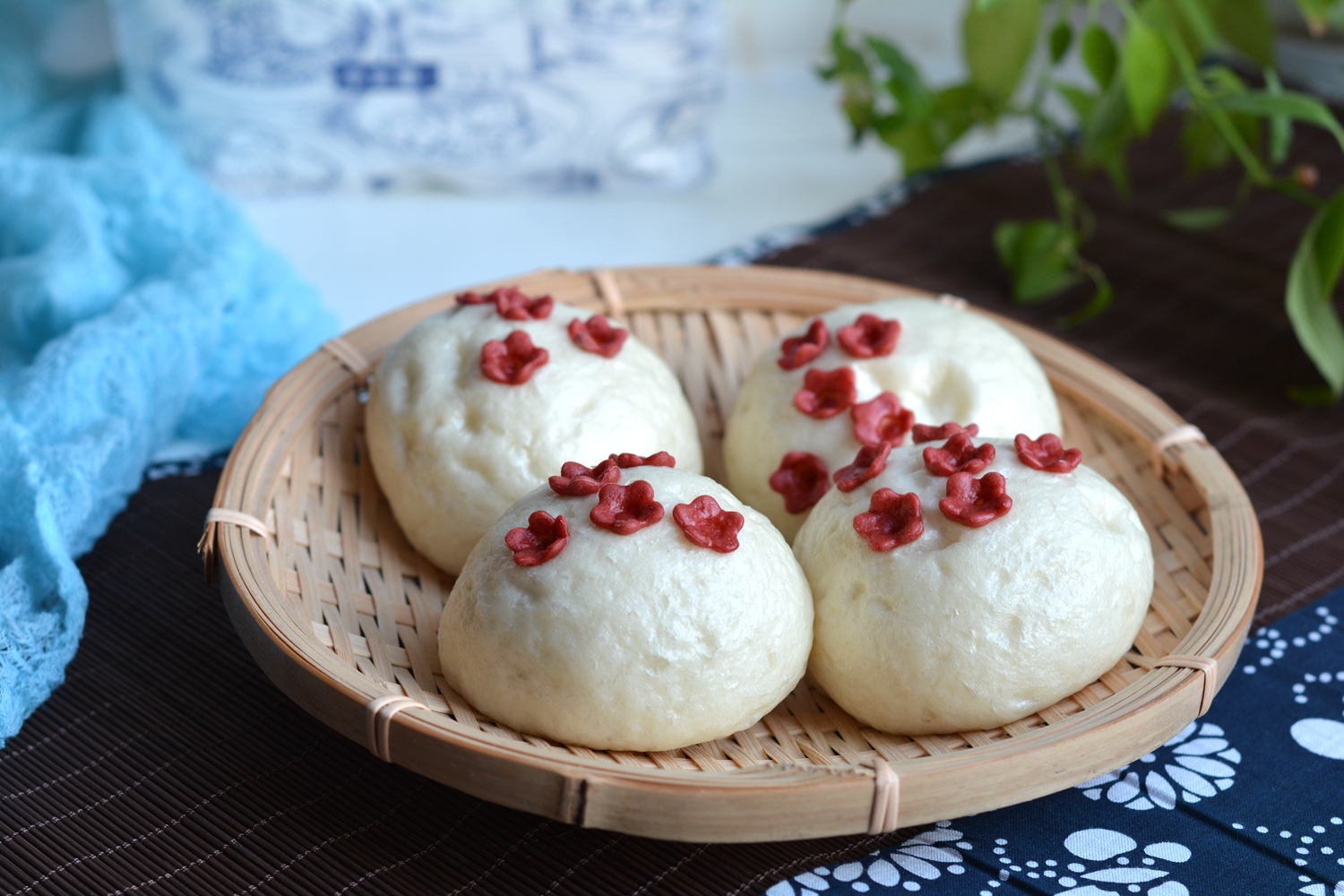 材料:新良蒸制专用小麦粉200克,酵母3克,温水140克,白糖5克,豆馅240克,红曲粉少许