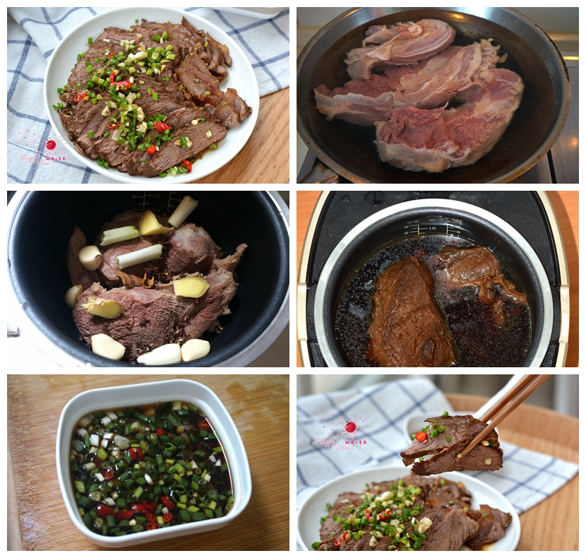 5.时间到,用筷子扎一扎肉最厚的那块,如果能轻松扎透就可以了,如果有些费劲,可再加一个程序调整时间;卤好的肉块泡在汤中,直到汤自然冷却再捞出来;这样能将汤中的味道和一些汤汁充分吸进肉中;