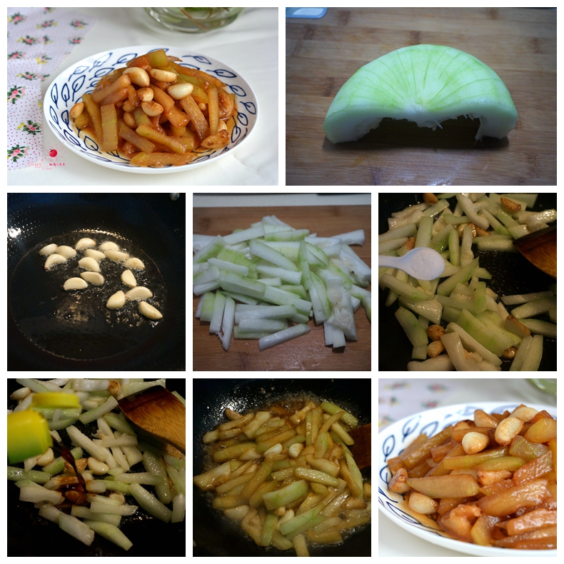 材料:冬瓜一块,大蒜一把,植物油少许,酱油少许,盐适量