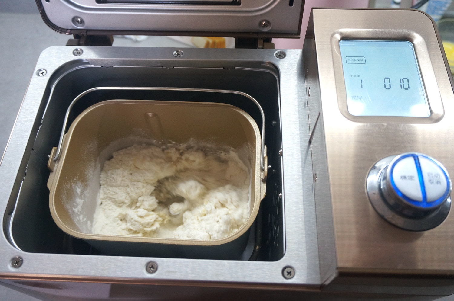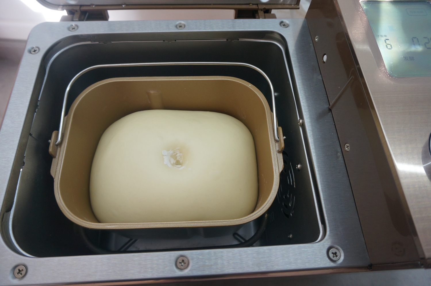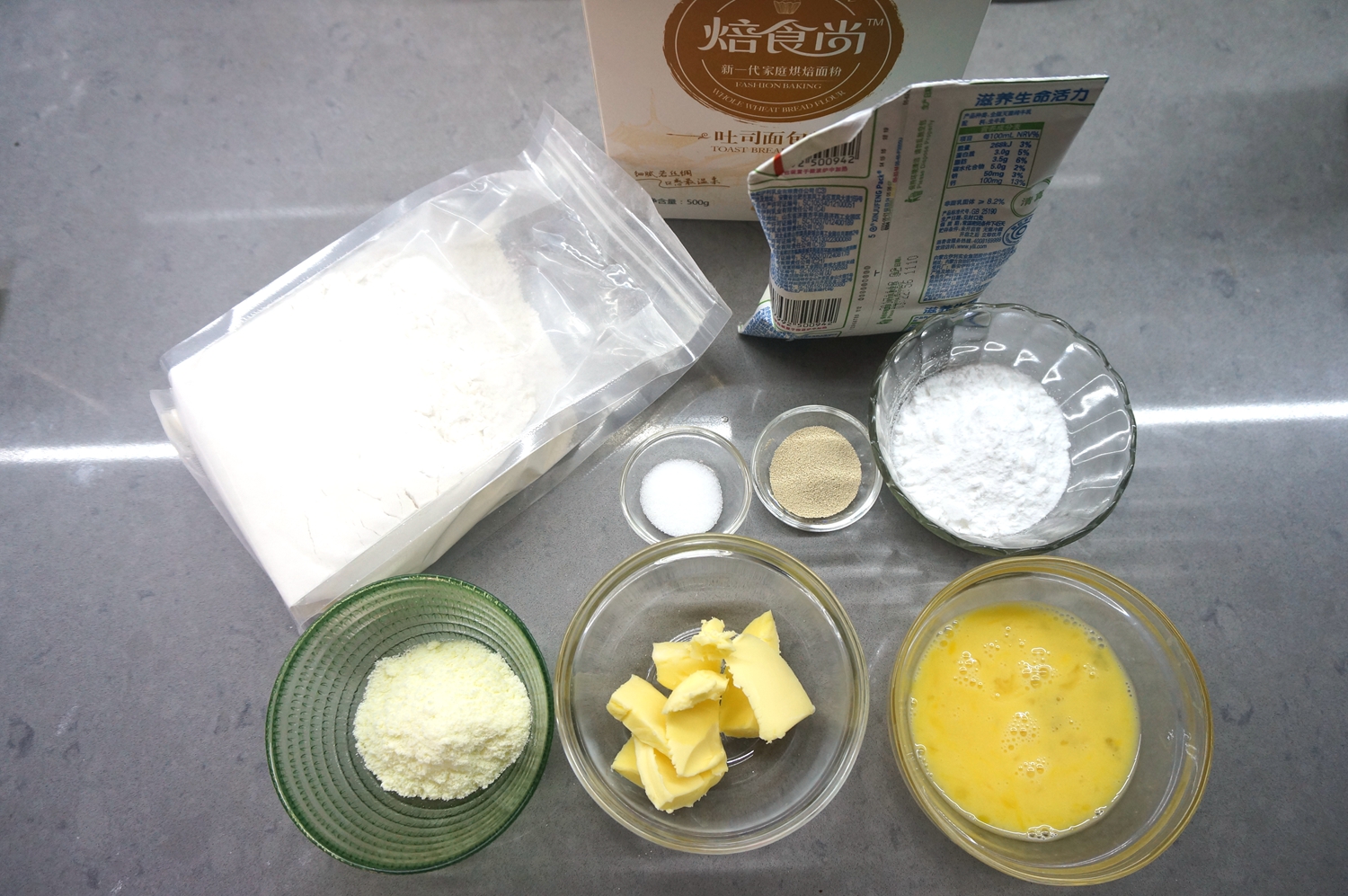 材料:高筋面粉300克,酵母3.5克,细砂糖36克,盐4克,奶粉12克,鸡蛋液35克,牛奶190克,黄油30克;三文鱼肠150克,原味奶酪2片,沙拉酱30克,表面刷蛋液少许