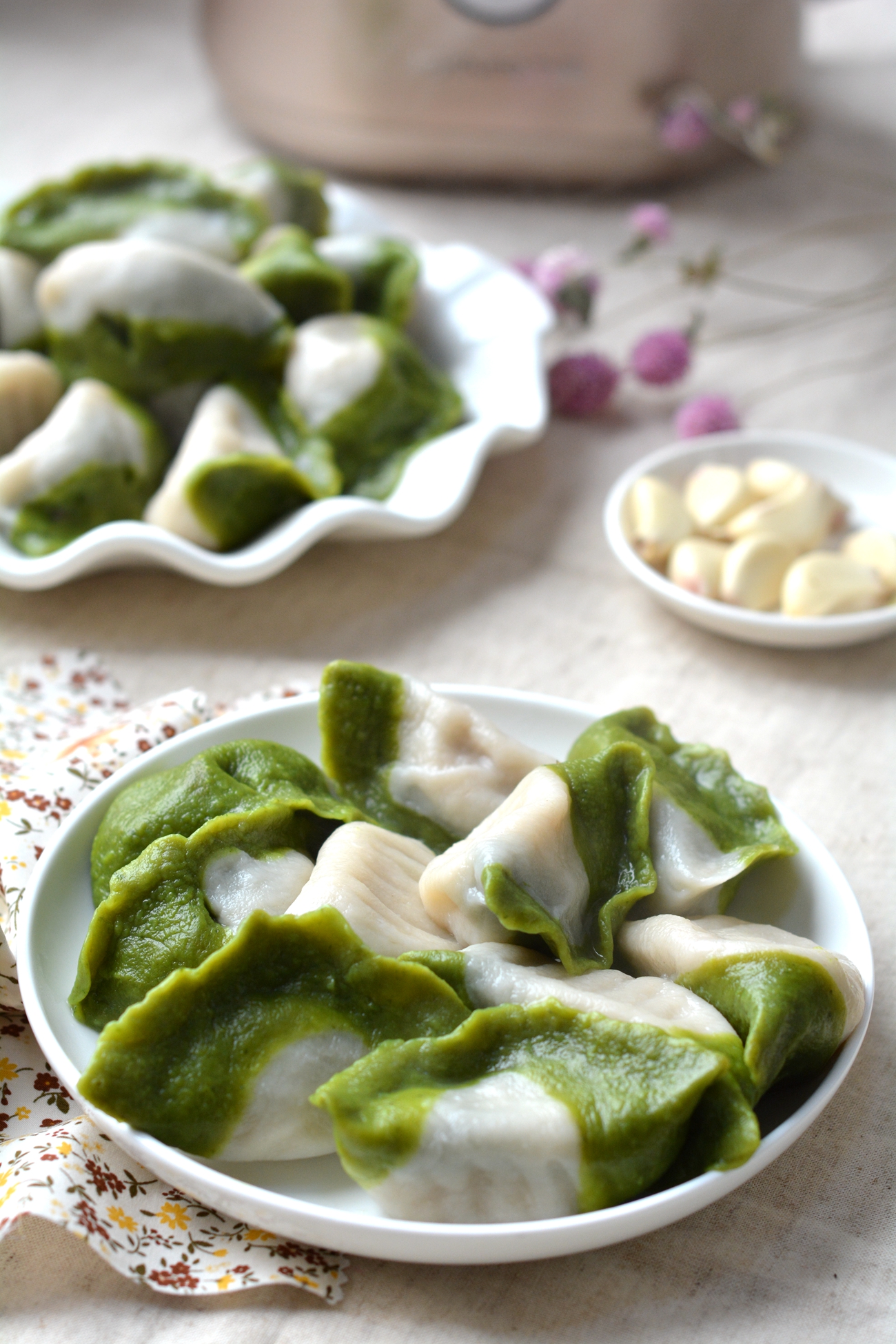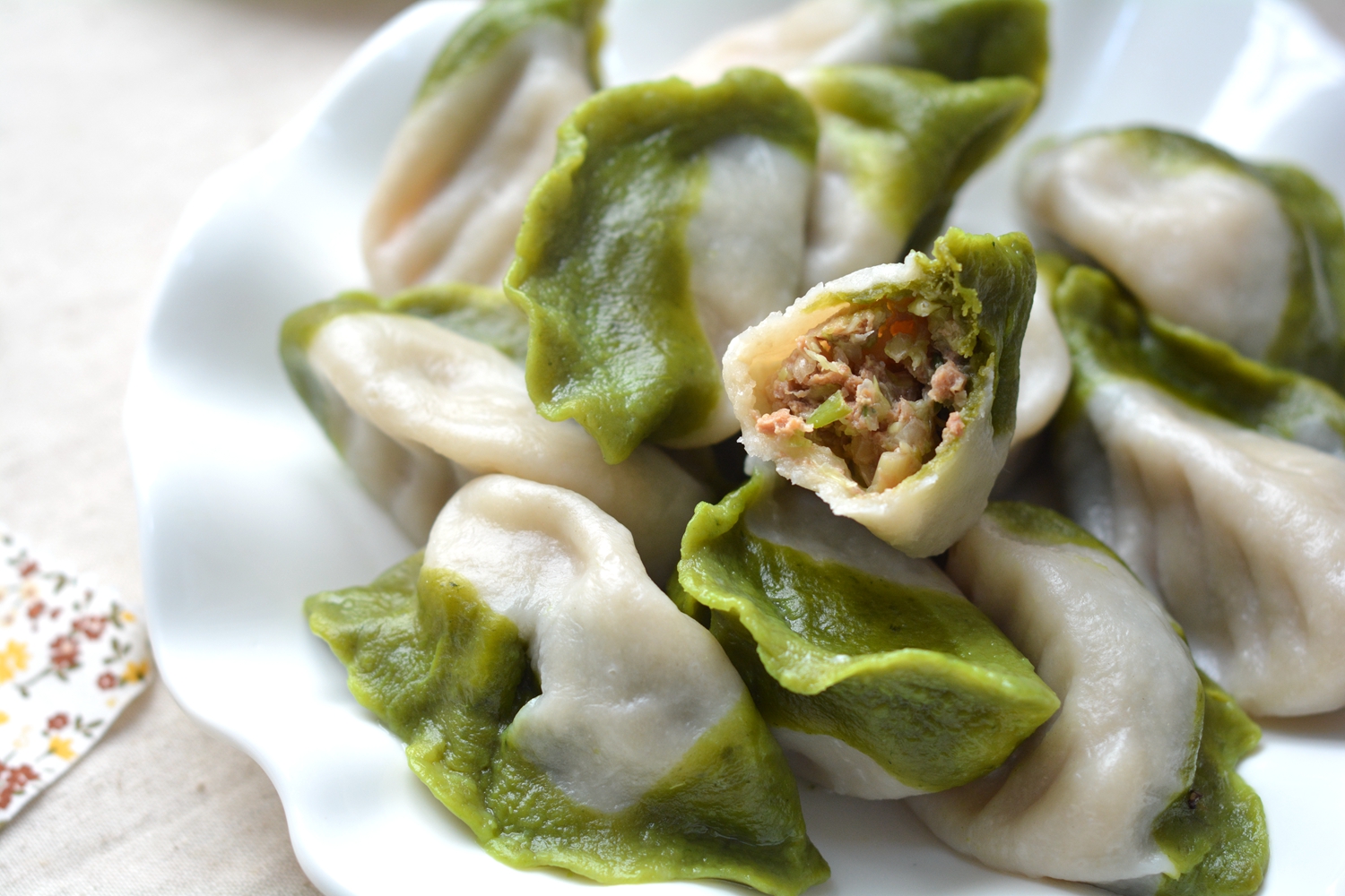 材料:菠菜200克,面粉适量,清水适量,肉馅,白菜,酱油,生抽,盐,葱花,盐
