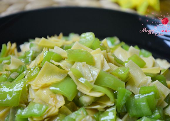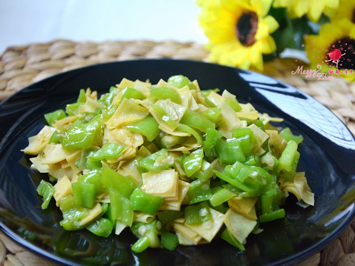 材料:尖椒6根,豆腐皮120克,植物油25克,盐适量,蚝油30克,大蒜末适量