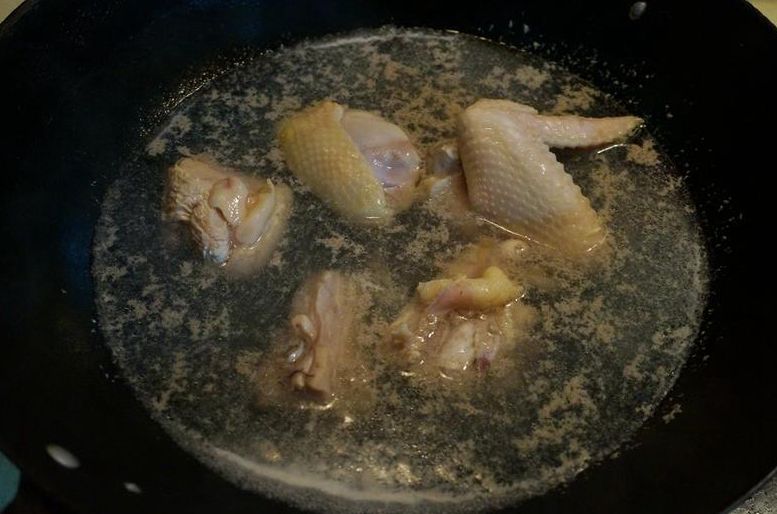2. 鸡块入水中焯一分钟,去除血沫;http://si1.go2yd.com/get-image/0JZ4XnL7CXQ