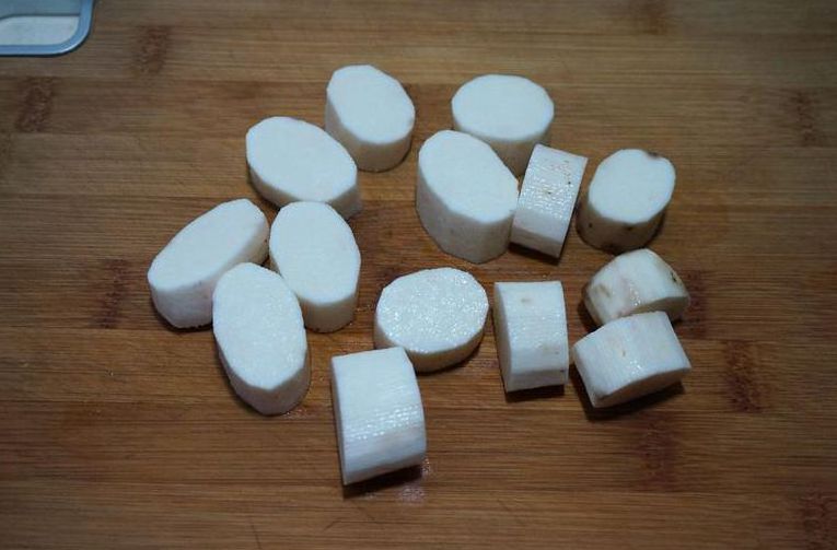 4. 山药刮外皮,切成2公分厚的段;http://si1.go2yd.com/get-image/0JZ4a64mM6q