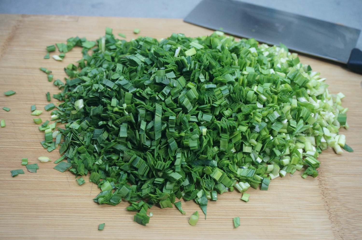 3. 韭菜洗净甩掉叶间的水,切成碎末;http://si1.go2yd.com/get-image/0JZAYaiX9Zg