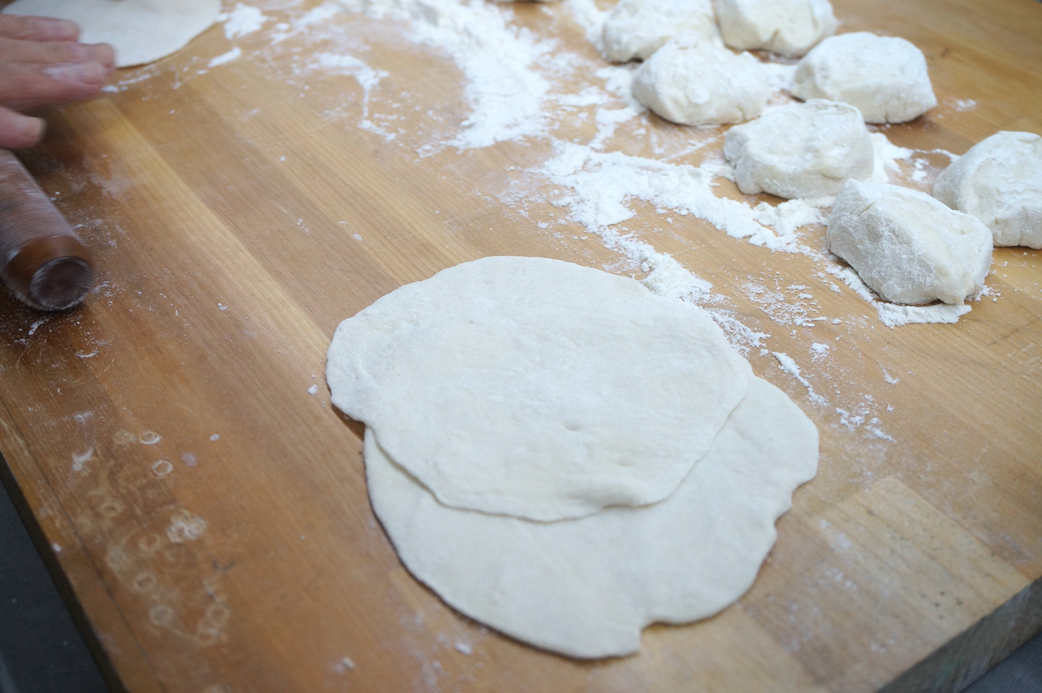 5. 面团取出放在案板上,搓成长条,切成大小均匀的剂子,擀成中间稍厚边缘略薄的椭圆形皮子;http://si1.go2yd.com/get-image/0JZAg9B3kKu