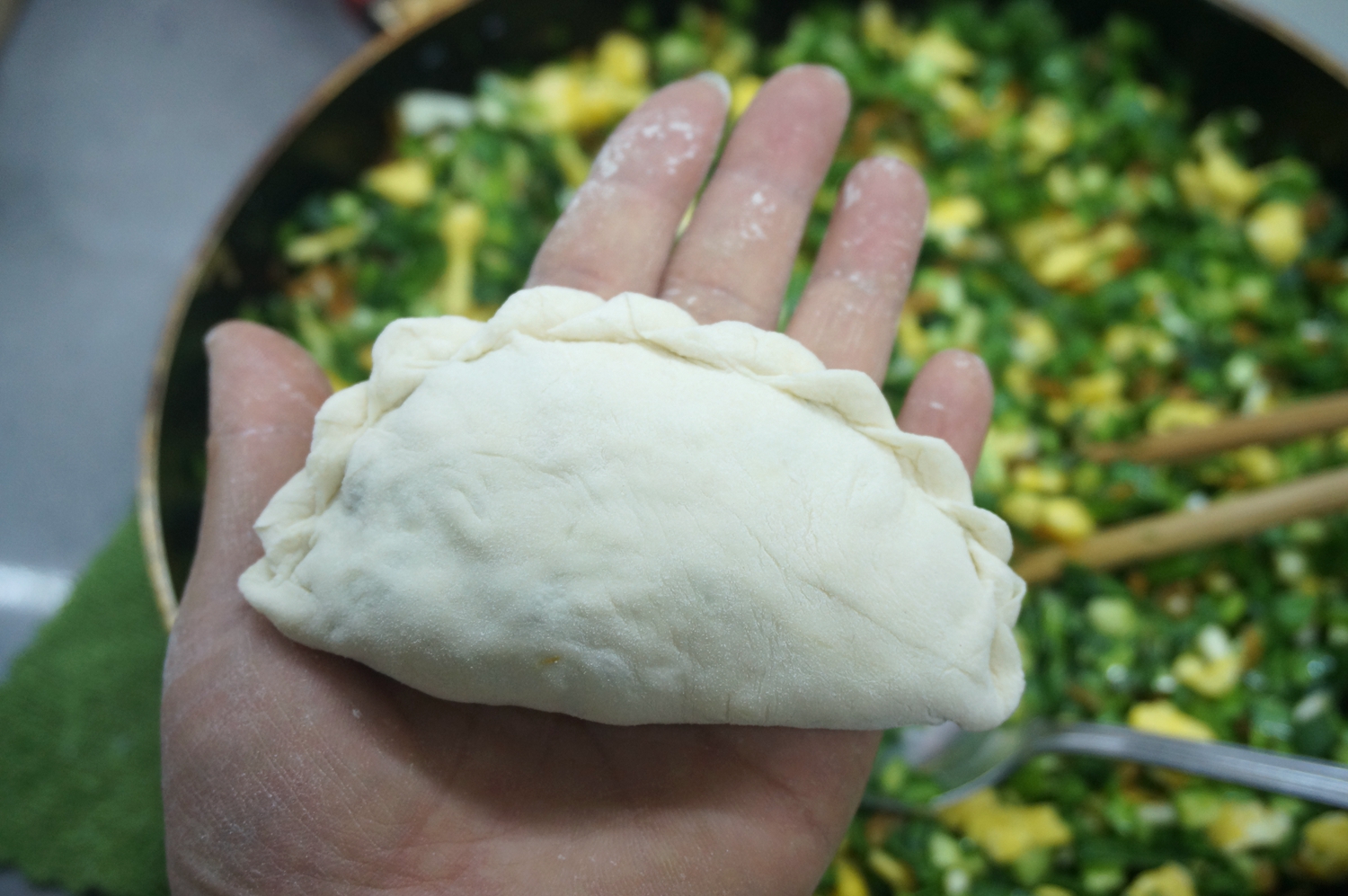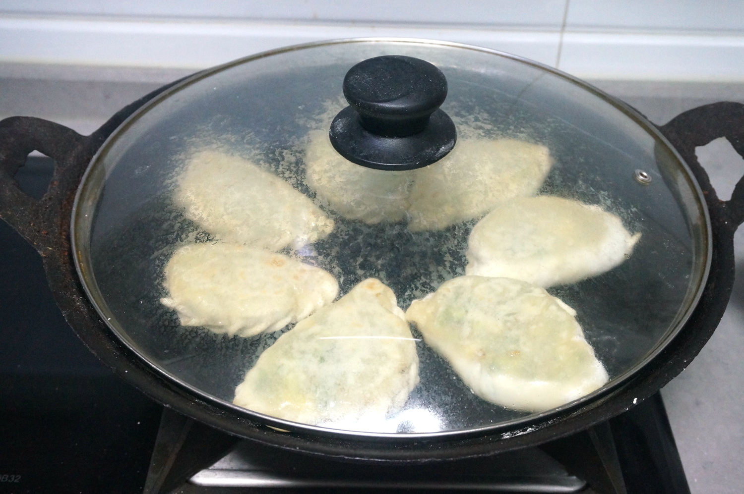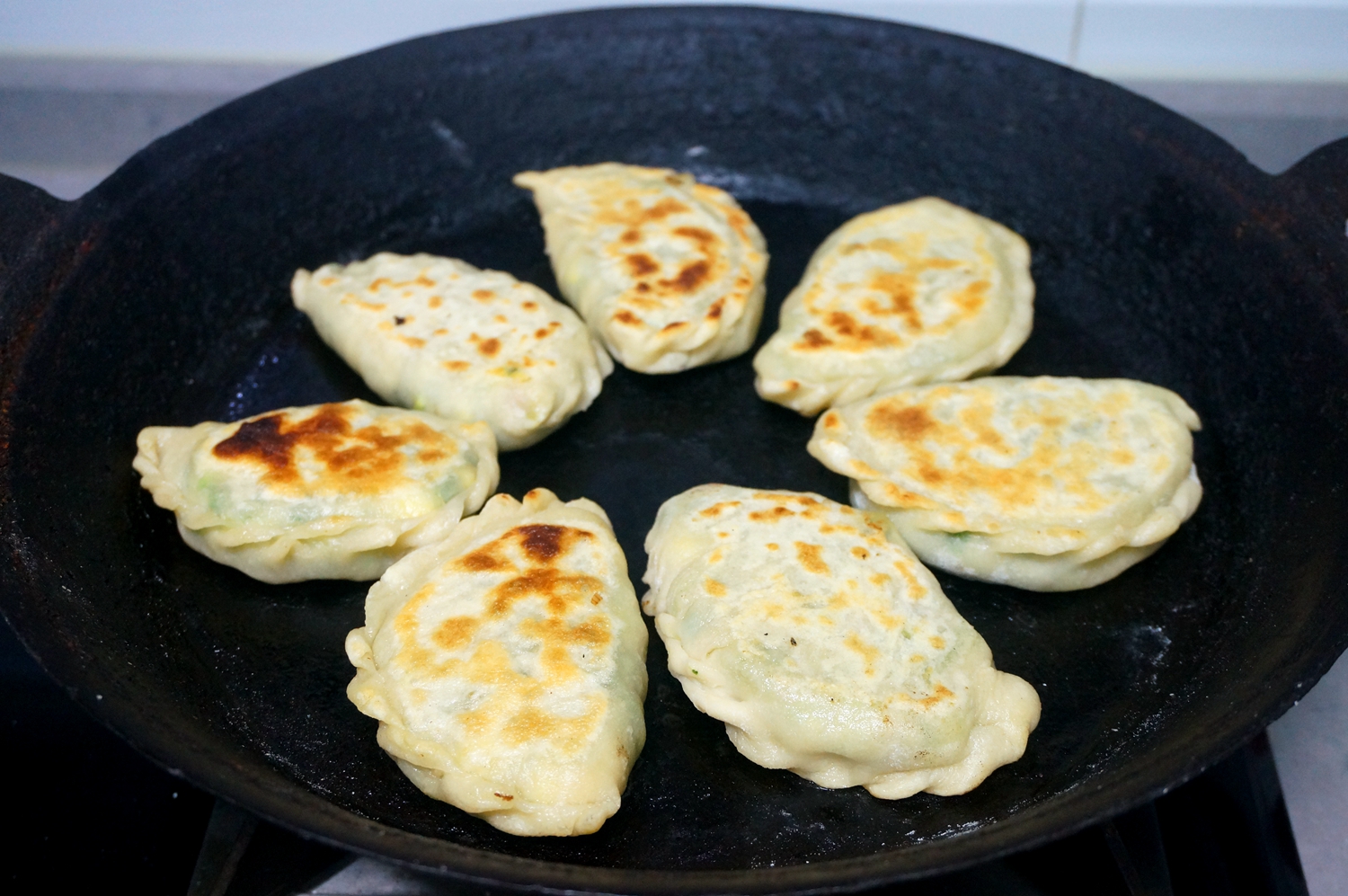 2. 韭菜生吃都可以,所以烙的时间不要太长,肚子一鼓就可以出锅了。