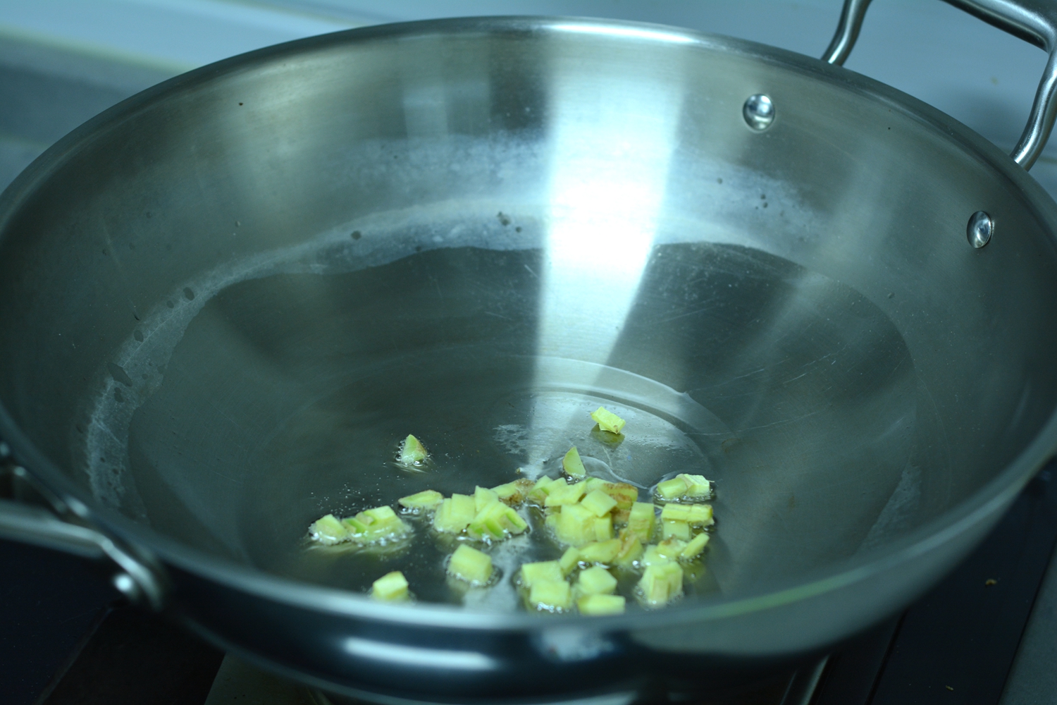 6. 炒锅中倒适量油,小火把姜煸出香味;http://si1.go2yd.com/get-image/0JdYZQx61qa