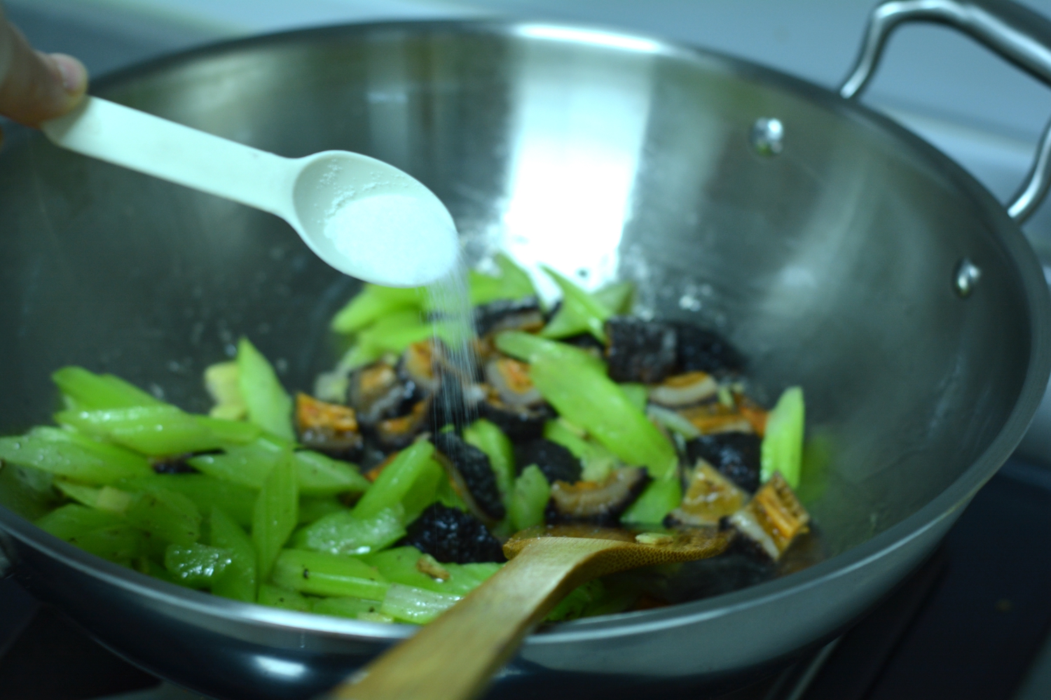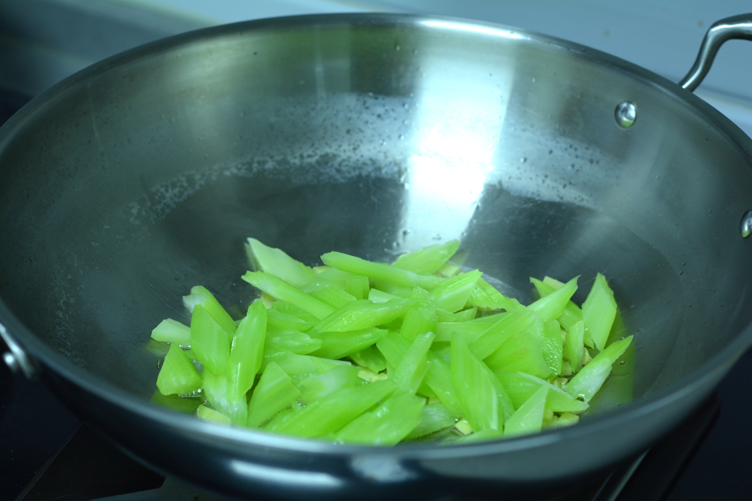 7. 将芹菜入锅中翻炒几下;http://si1.go2yd.com/get-image/0JdYbJplCc4