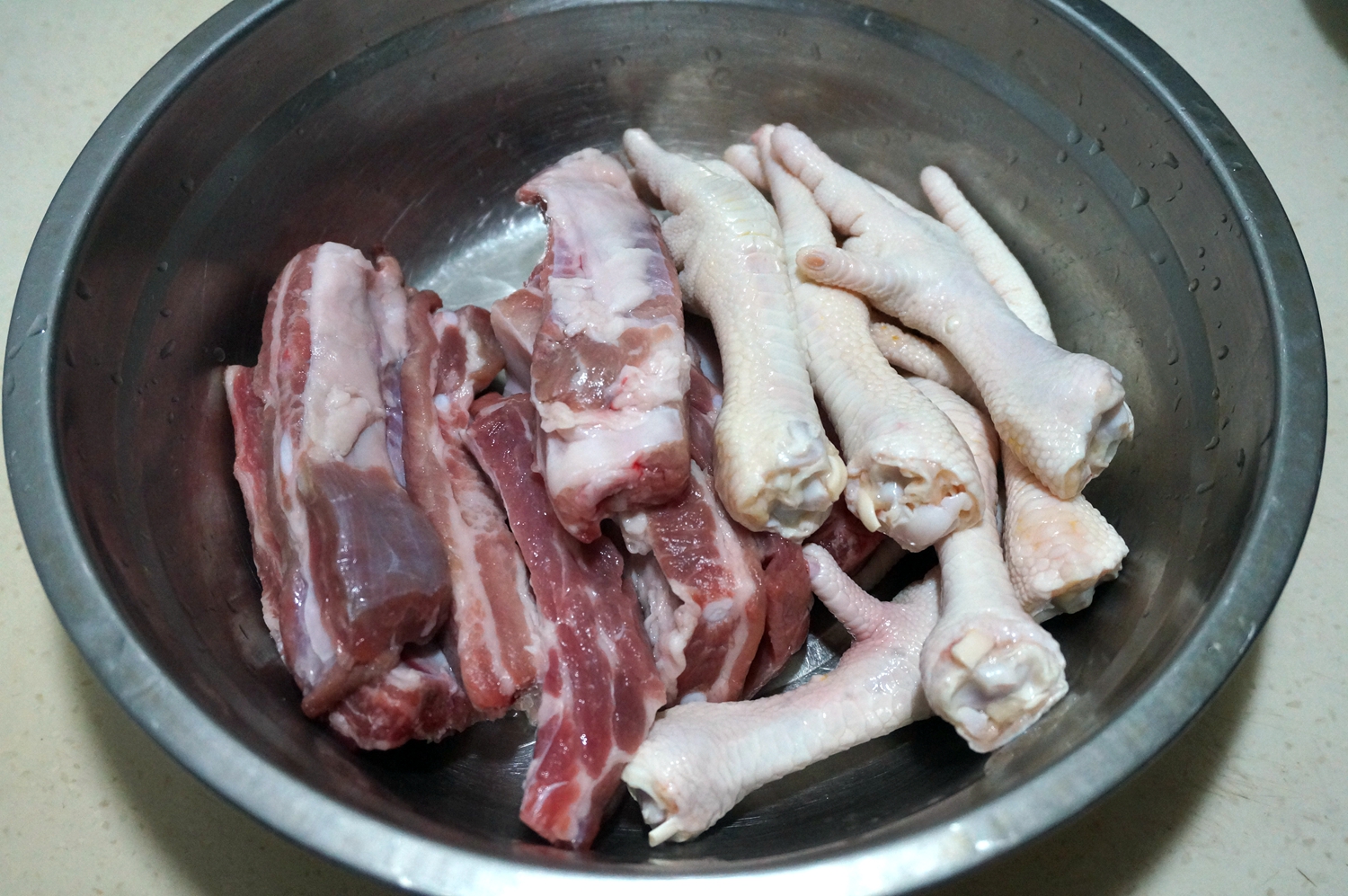 1. 猪排骨和鸡爪清洗干净;http://si1.go2yd.com/get-image/0Jgt9vNGc7c