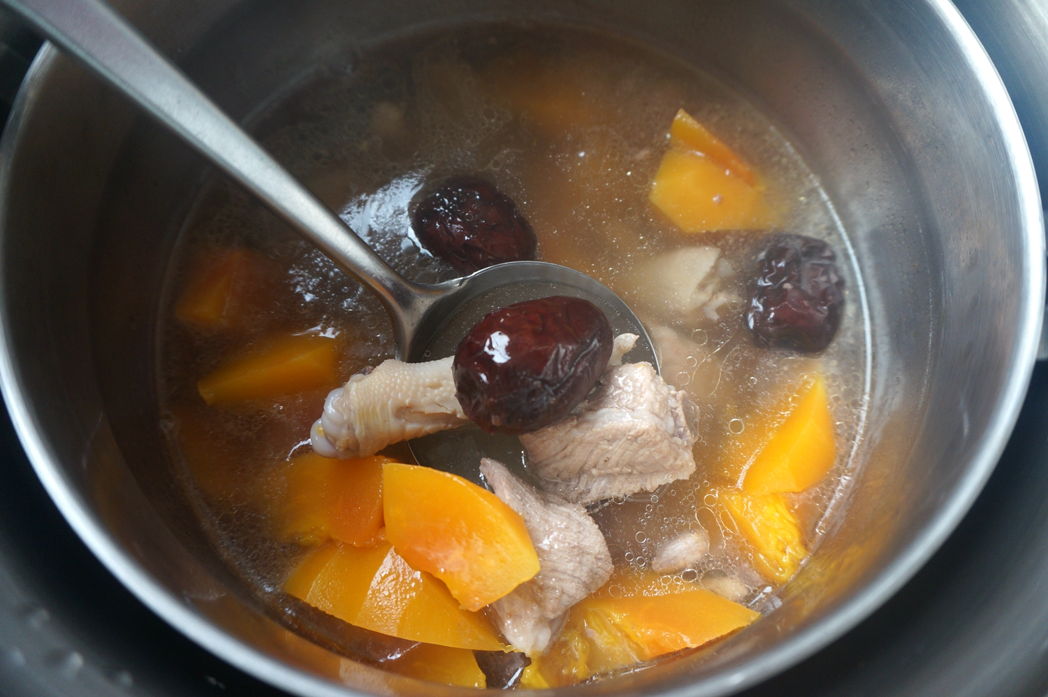 6. 鸡爪、排骨、红枣、花生米同热水锅中慢慢炖煮,直到煮到肉能脱骨;http://si1.go2yd.com/get-image/0JgtEgJEs2i