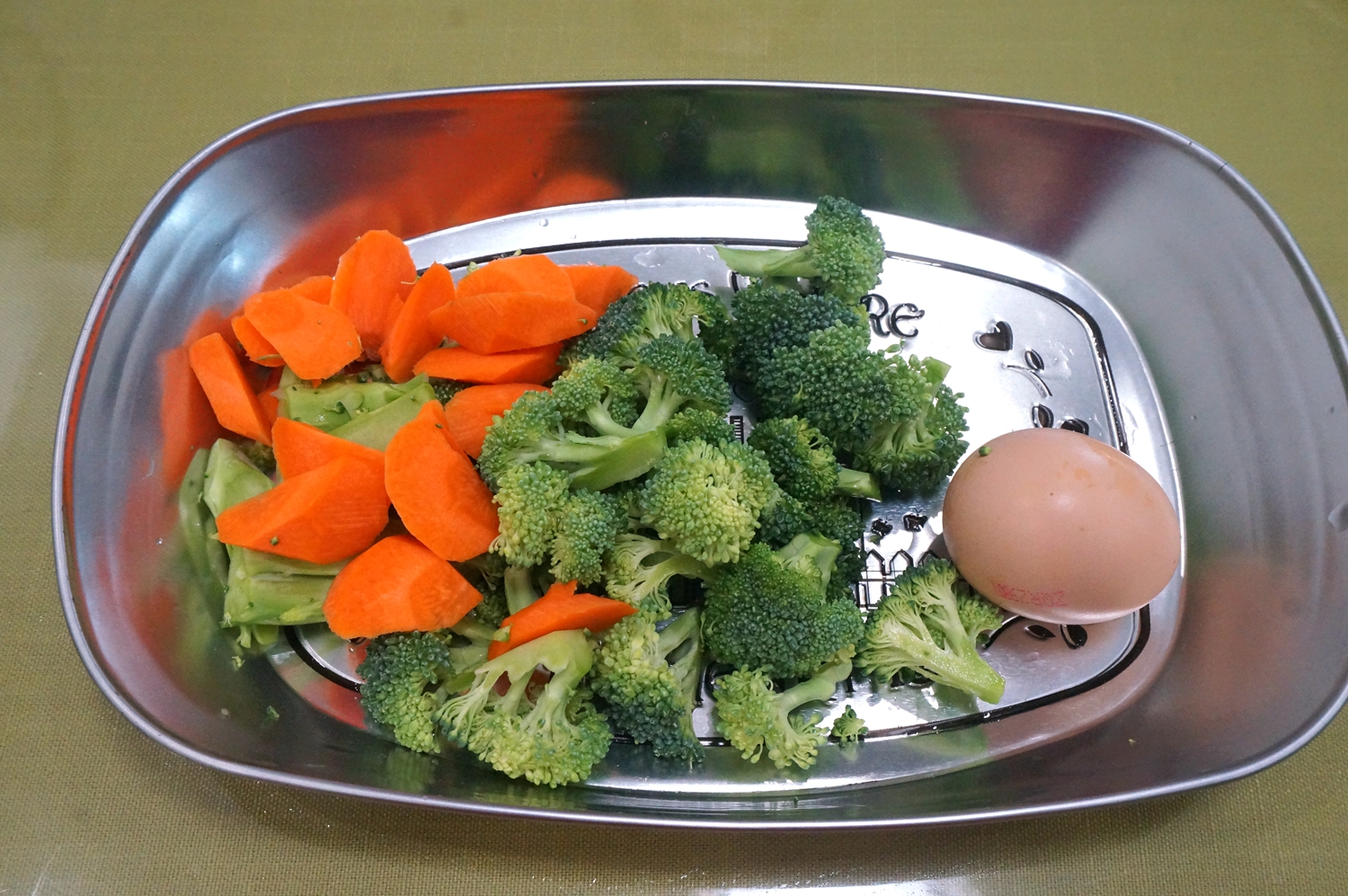 4. 西兰花切小朵,胡萝卜切滚刀块,鸡蛋1、2个都成,看几个人吃饭喽;http://si1.go2yd.com/get-image/0JiVCqkCsam