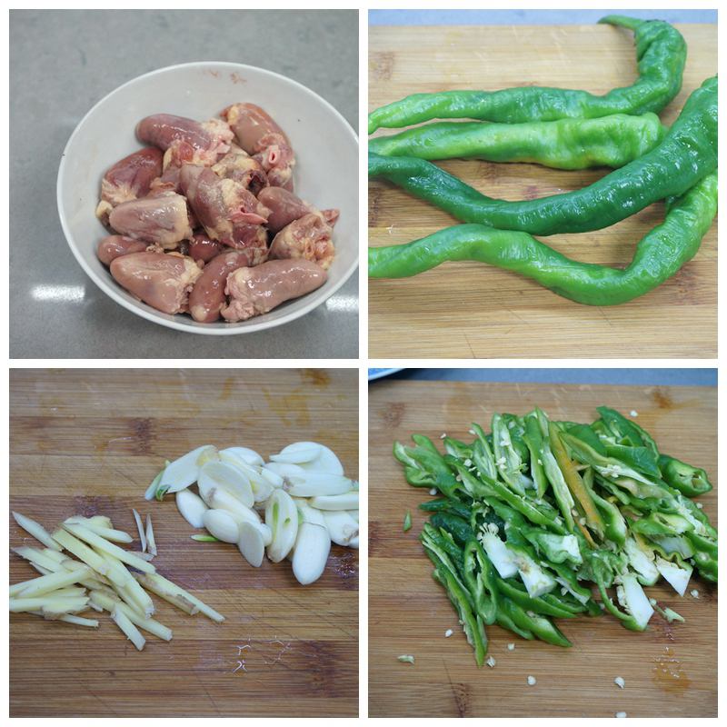 材料:鸡心一碗,辣椒4根,大蒜数瓣,姜1块,油适量,酱油少许,盐适量,料酒少许