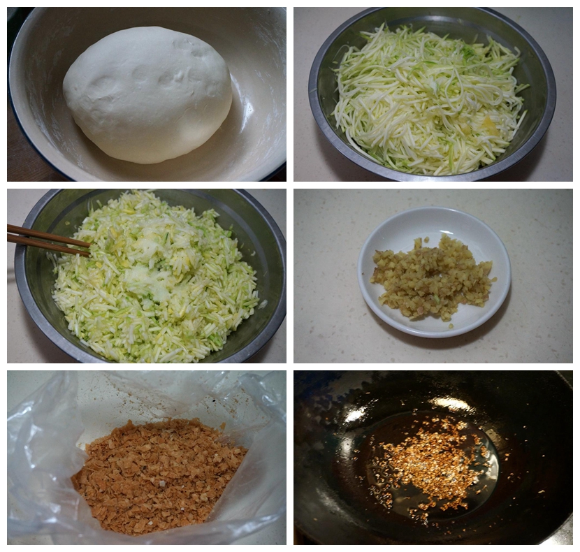 材料:面粉1000克,清水650克,南瓜一块(杀水后430克),排叉120克,植物油适量,姜末适量,盐适量