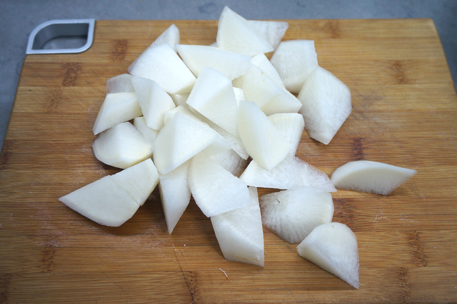 6. 将白萝卜刮皮切滚刀块;http://si1.go2yd.com/get-image/0Jyx1WrSODA
